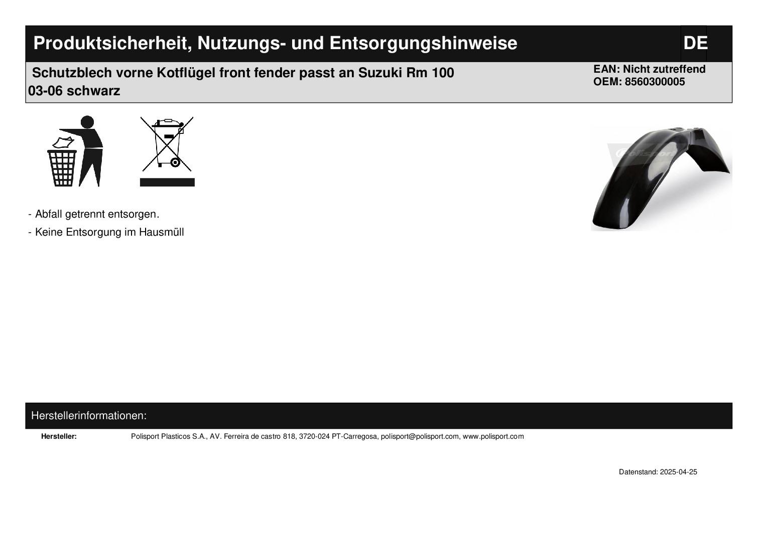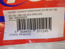 In dieser Auktion gibt es folgenden Artikel zu kaufen: Schutzblech vorne (siehe Foto) Modell: passend für Kawasaki KX 85 Bj.: 2001 - 2013 KX 100 Bj.: 2001 - 2013 passend für Suzuki RM 100 Bj.: 2003 - 2006 Lieferumfang: siehe Foto Artikelzustand: neu aus Geschäftsauflösung, mit minimalen Lagerspuren, Zustand siehe Foto Bei Unklarheiten oder Fragen bitte erst E-Mail schreiben.