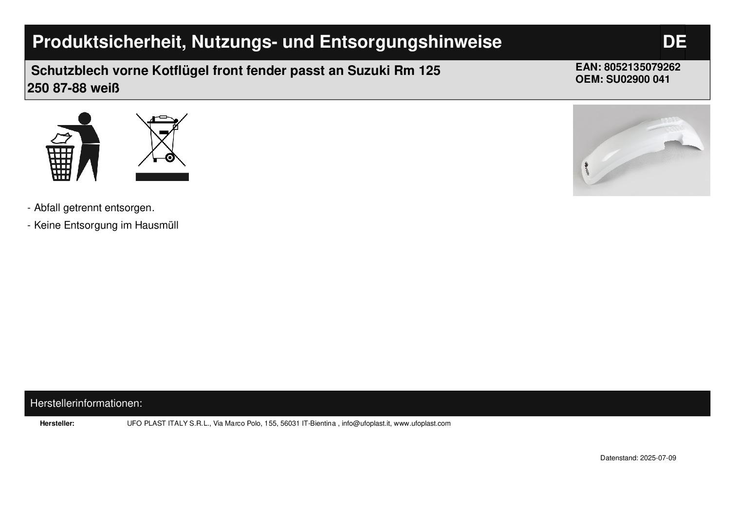 In dieser Auktion gibt es folgenden Artikel zu kaufen: Schutzblech (ähnlich Foto) Modell: passend für Suzuki RM 125, 250 Bj.: 87 - 88 Lieferumfang: ähnlich Foto