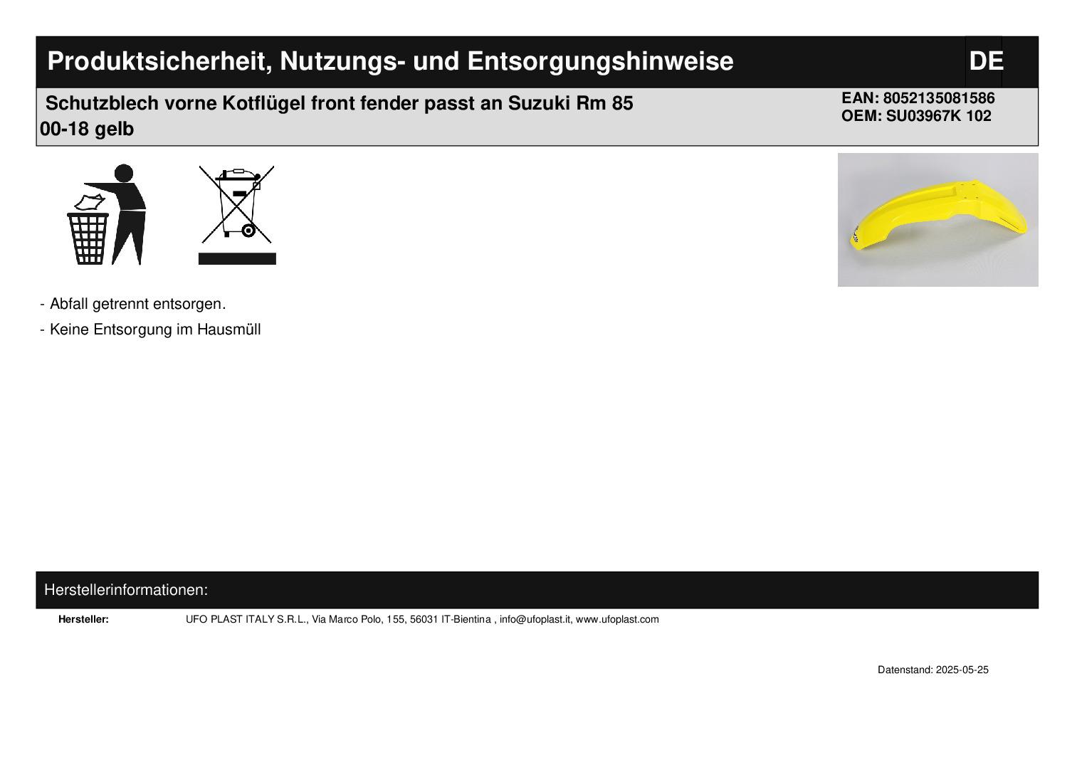 In dieser Auktion gibt es folgenden Artikel zu kaufen: Schutzblech (siehe Foto) Modell: passend für Suzuki RM 85 Bj.: 00 - 25 Lieferumfang: siehe Foto Artikelzustand: neu aus Geschäftsauflösung, mit minimalen Lagerspuren; Zustand siehe Foto Bei Unklarheiten oder Fragen bitte erst E-Mail schreiben.
