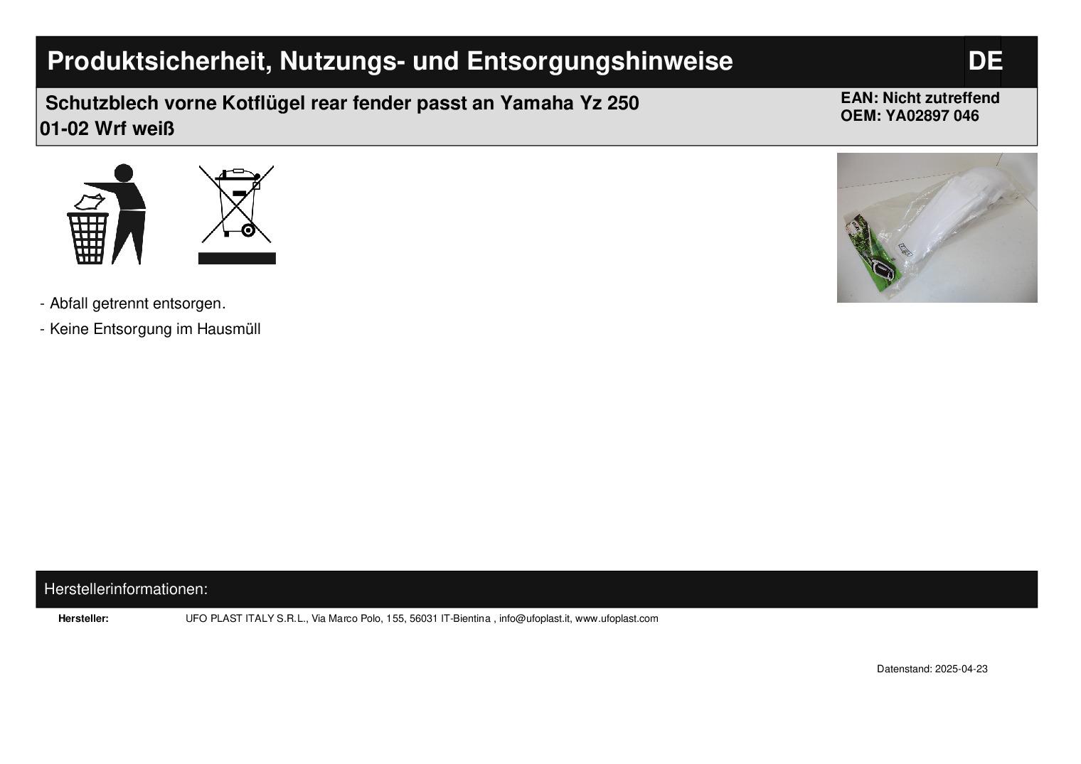 In dieser Auktion gibt es folgenden Artikel zu kaufen: Schutzblech (siehe Foto) Fahrzeug: passend für Yamaha YZ 250 Bj.: 01 - 02 WRF 400 Bj.: 98 - 99 WRF 426 Bj.: 00 - 02 Lieferumfang: siehe Foto Artikelzustand: neu aus Geschäftsauflösung, mit minimalen Lagerspuren; Zustand siehe Foto Bei Unklarheiten oder Fragen bitte erst E-Mail schreiben.