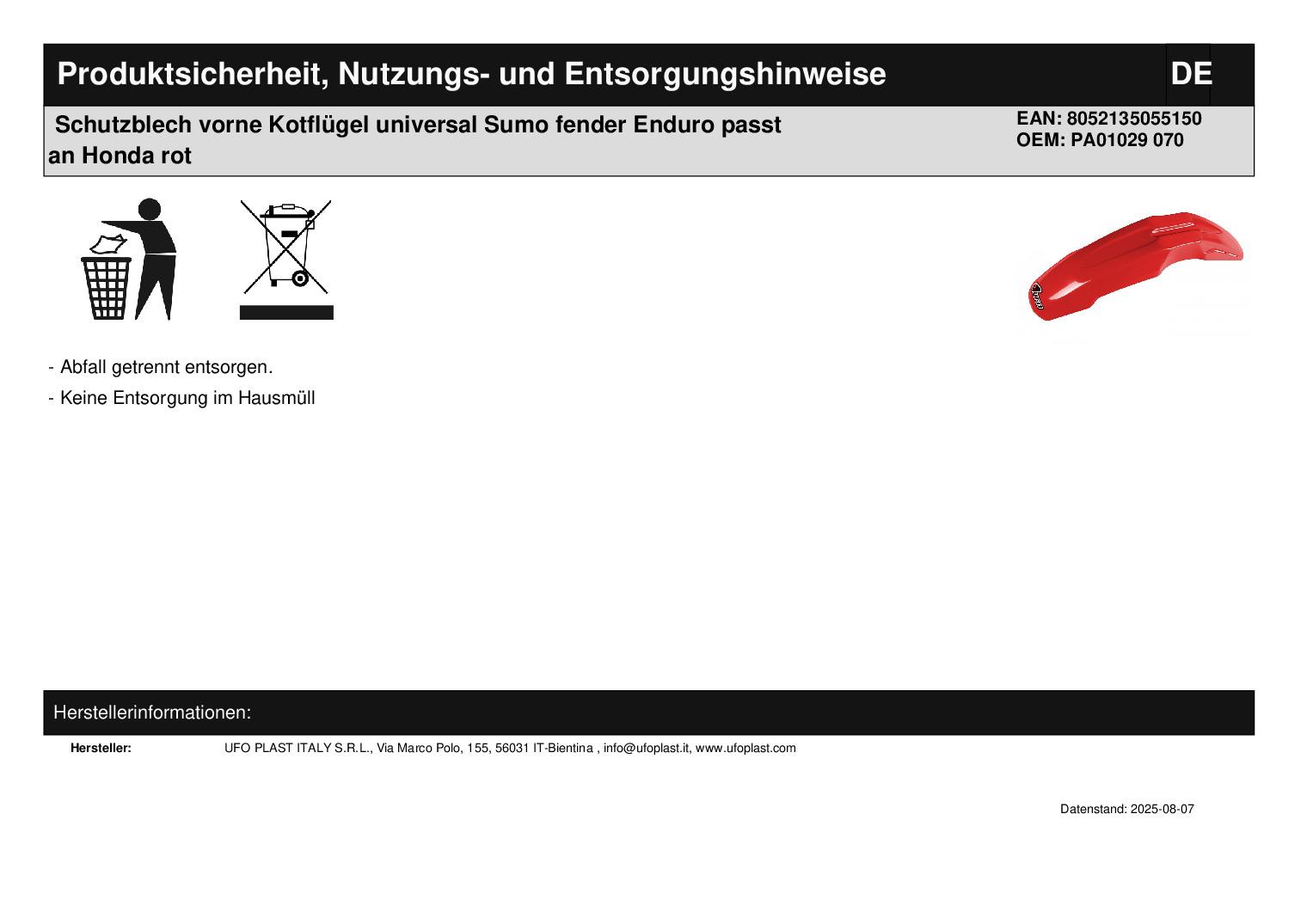 Titel: Schutzblech vorne Kotflügel universal Sumo fender Enduro passt an Honda rot
