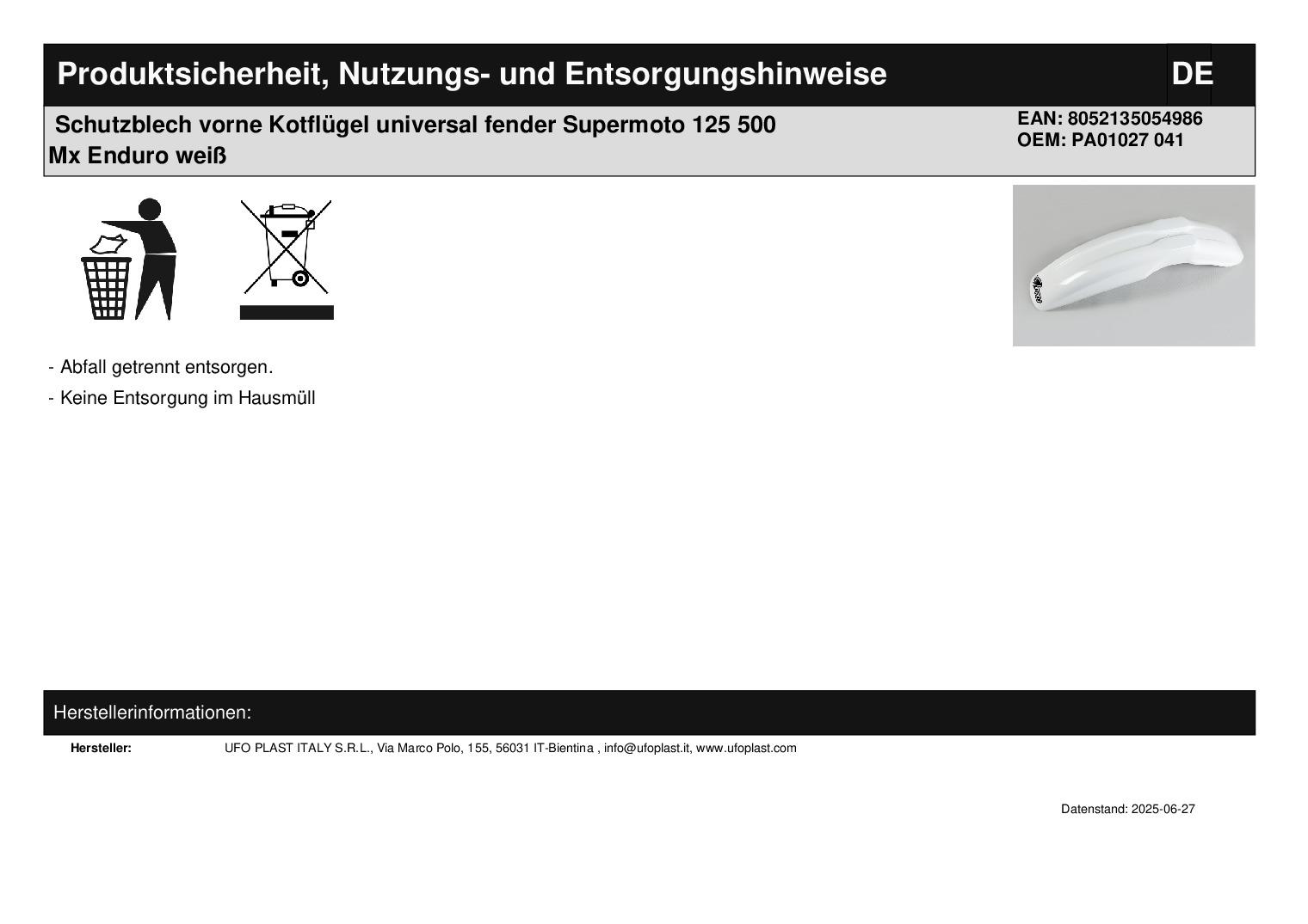 In dieser Auktion gibt es folgenden Artikel zu kaufen: Schutzblech vorne (siehe Foto) Fahrzeug: universal 125 - 500 MX Enduro Bj.: unbekannt Details: Bild 3 + 4 dient nur zur besseren Veranschaulichung! Abmaße: Breite gesamt: ca. 16,2 cm Länge gesamt (ohne Krümmung): ca. 60,7 cm Lieferumfang: siehe Foto Artikelzustand: neu Es handelt sich hierbei um kein Originalteil! Bei Unklarheiten oder Fragen bitte erst E-Mail schreiben.