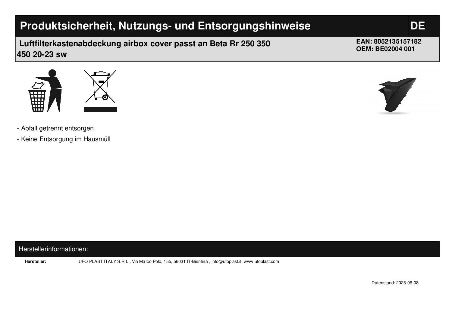 In dieser Auktion gibt es folgenden Artikel zu kaufen: Luftfilterkastenabdeckung (siehe Foto) Fahrzeug: passend für Beta RR 250, 300, 350, 400, 450 Bj.: 20 - 23 Lieferumfang: siehe Foto Artikelzustand: neu Bei Unklarheiten oder Fragen bitte erst E-Mail schreiben.