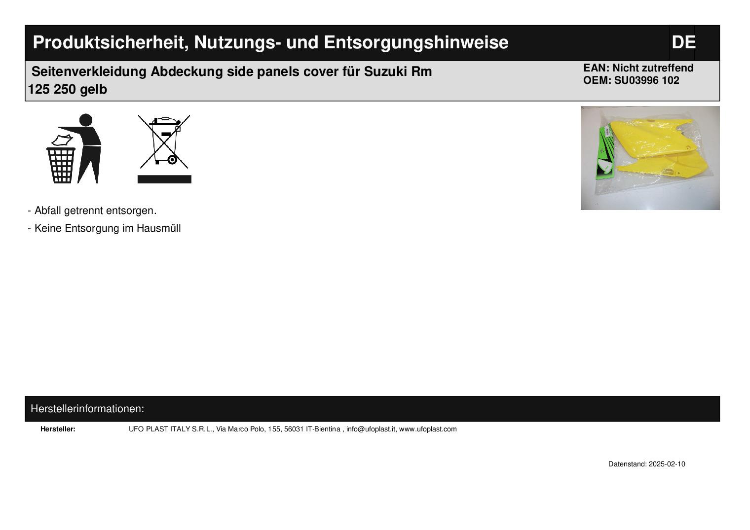 Titel: Seitenverkleidung Abdeckung side panels cover passt an Suzuki Rm 125 250 gelb