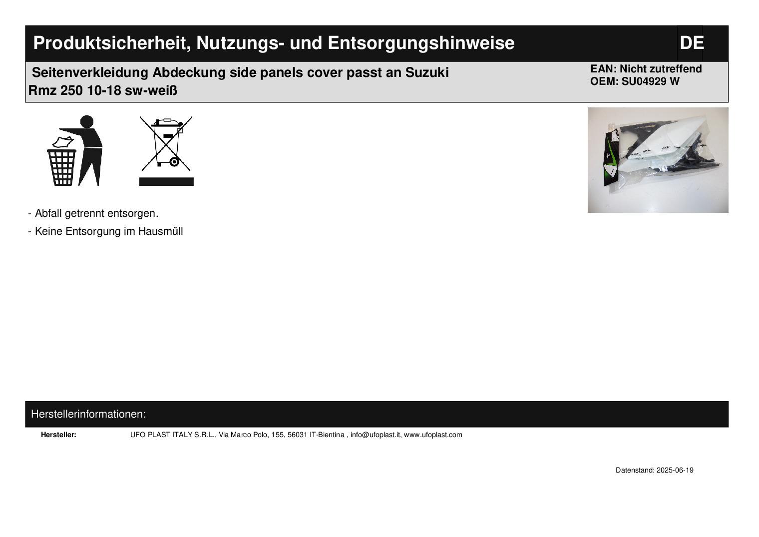 In dieser Auktion gibt es folgenden Artikel zu kaufen: Seitenverkleidung (siehe Foto) Modell: passend für Suzuki RMZ 250 Bj.: 10 - 18 Lieferumfang: links + rechts (siehe Foto) Artikelzustand: neu aus Geschäftsauflösung, mit minimalen Lagerspuren; Zustand siehe Foto Bei Unklarheiten oder Fragen bitte erst E-Mail schreiben.