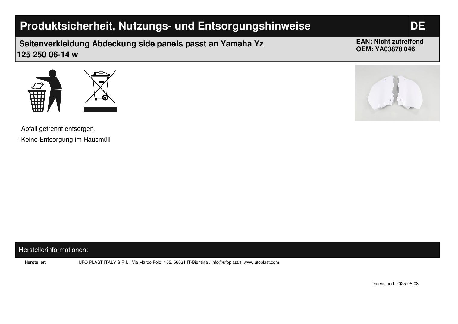 Titel: Seitenverkleidung Abdeckung side panels passt an Yamaha Yz 125 250 06-14 w