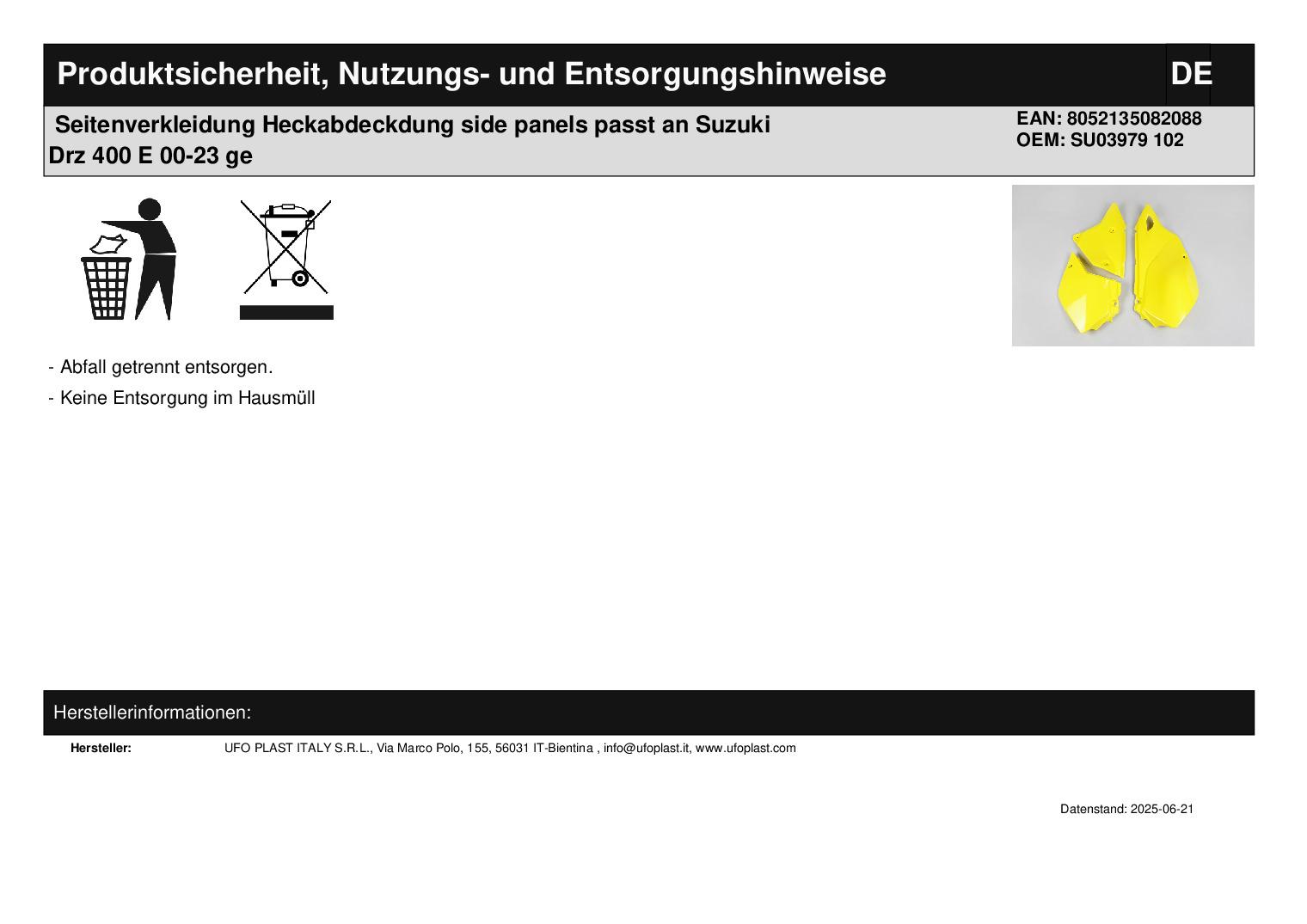 Titel: Seitenverkleidung Heckabdeckdung side panels passt an Suzuki Drz 400 E 00-23 ge