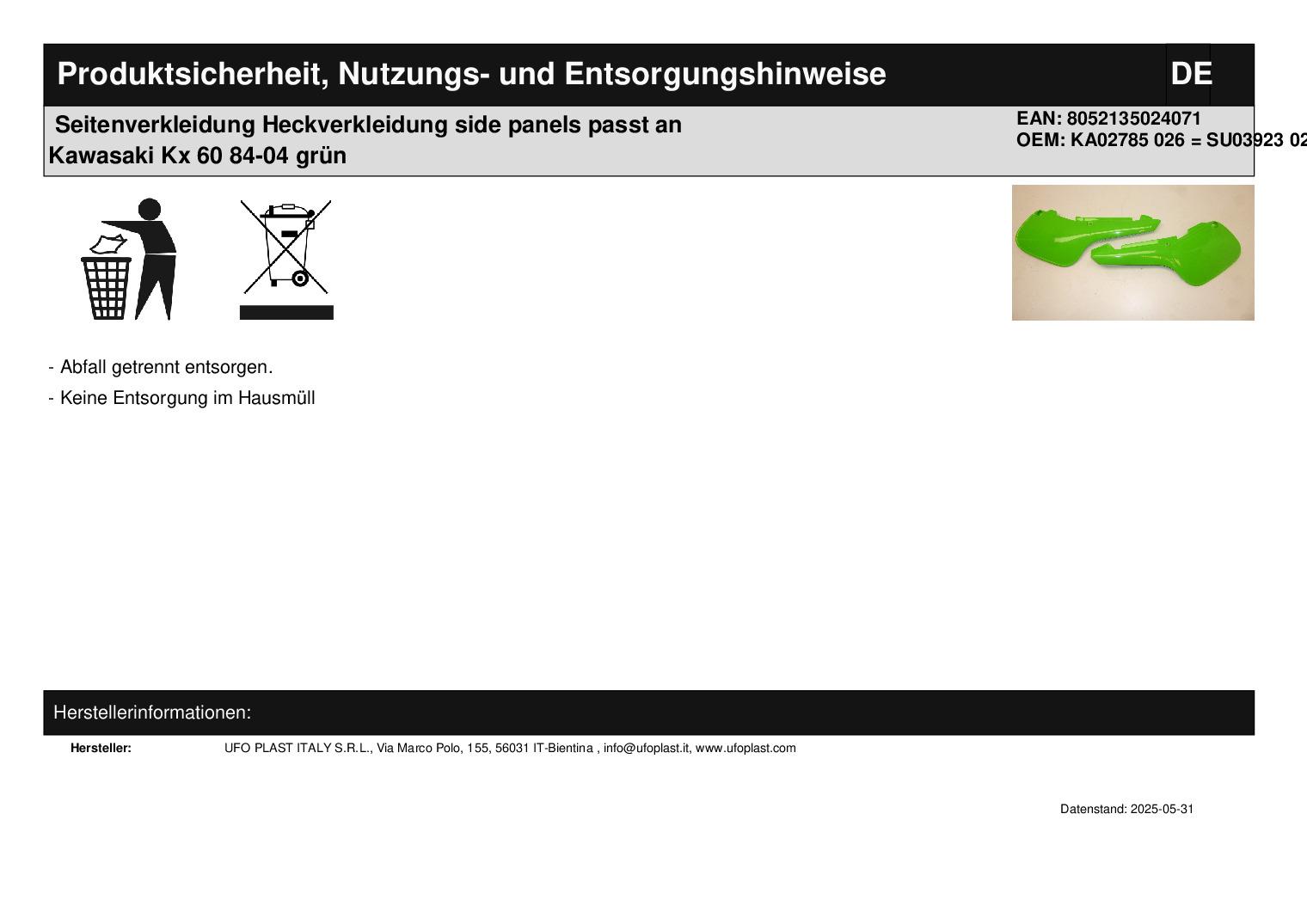 Titel: Seitenverkleidung Heckverkleidung side panels passt an Kawasaki Kx 60 84-04 grün
