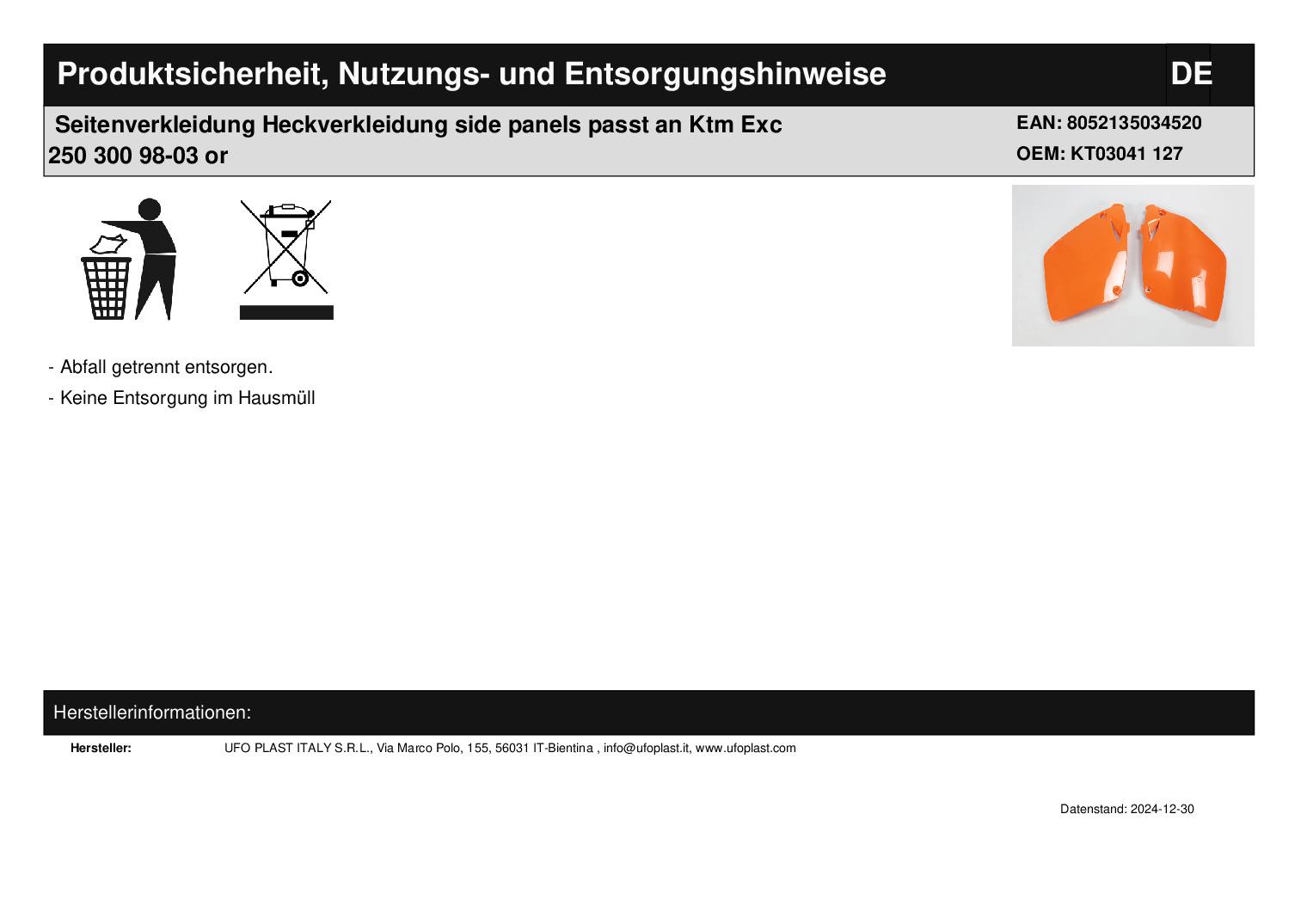 In dieser Auktion gibt es folgenden Artikel zu kaufen: Seitenverkleidung (siehe Foto) Modell: passend für KTM EXC 360, 200, 300 Bj.: 1998 - 2003 EXC 380, 400, 520 620 Bj.: 2000 - 2003 SX 250, 360, 125, 200, 300 Bj.: 1998 - 2003 SX 380, 400, 520, 620 Bj.: 2000 - 2003 Artikelzustand: neu Es handelt sich hierbei um kein Originalteil Bei Unklarheiten oder Fragen bitte erst E-Mail schreiben.