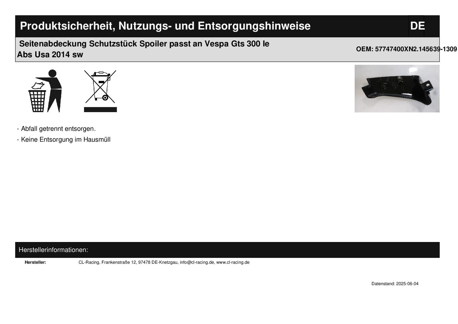 In dieser Auktion gibt es folgenden Artikel zu kaufen: Schutzstück Spoiler (siehe Foto) Modell: passend für Vespa GTS 300 IE ABS USA Bj.: 14 Lieferumfang: siehe Foto Artikelzustand: neu aus Geschäftsauflösung, mit leichten Lagerspuren; Zustand siehe Foto Bei Unklarheiten oder Fragen bitte erst E-Mail schreiben.