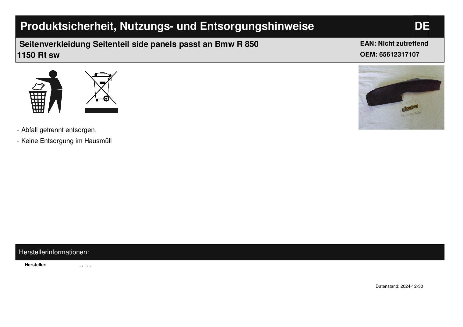 In dieser Auktion gibt es folgenden Artikel zu kaufen: Seitenteil (siehe Foto) Modell: passend für BMW R 850 RT Bj.: unbekannt R 1150 RT Bj.: unbekannt Lieferumfang: siehe Foto Artikelzustand: neu aus Geschäftsauflösung, mit minimalen Lagerspuren; Zustand ähnlich Foto