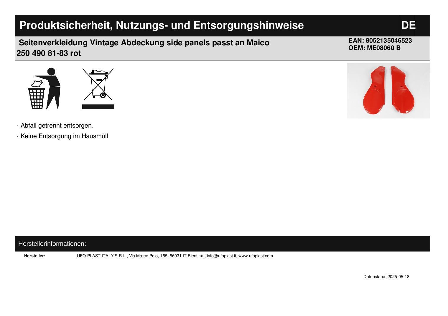 In dieser Auktion gibt es folgenden Artikel zu kaufen: Seitenverkleidung (ähnlich Foto) Modell: passend für Maico diverse Modelle 250 - 490 cc Bj.: 81 - 83 Lieferumfang: links und rechts Artikelzustand: neu Bei Unklarheiten oder Fragen bitte erst E-Mail schreiben.