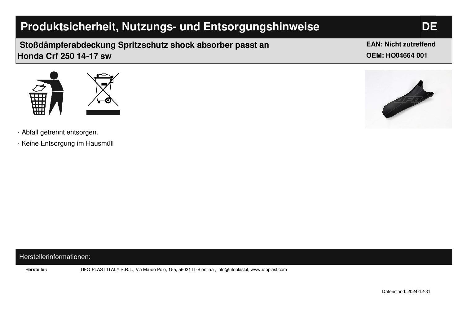 In dieser Auktion gibt es folgenden Artikel zu kaufen: Stoßdämpferabdeckung (siehe Foto) Modell: passend für Honda CRF 250 R Bj.: 14 - 17 CRF 450 R Bj.: 13 - 16 Lieferumfang: siehe Foto Artikelzustand: neu aus Geschäftsauflösung, mit leichten Lagerspuren; Zustand siehe Foto Bei Unklarheiten oder Fragen bitte erst E-Mail schreiben.