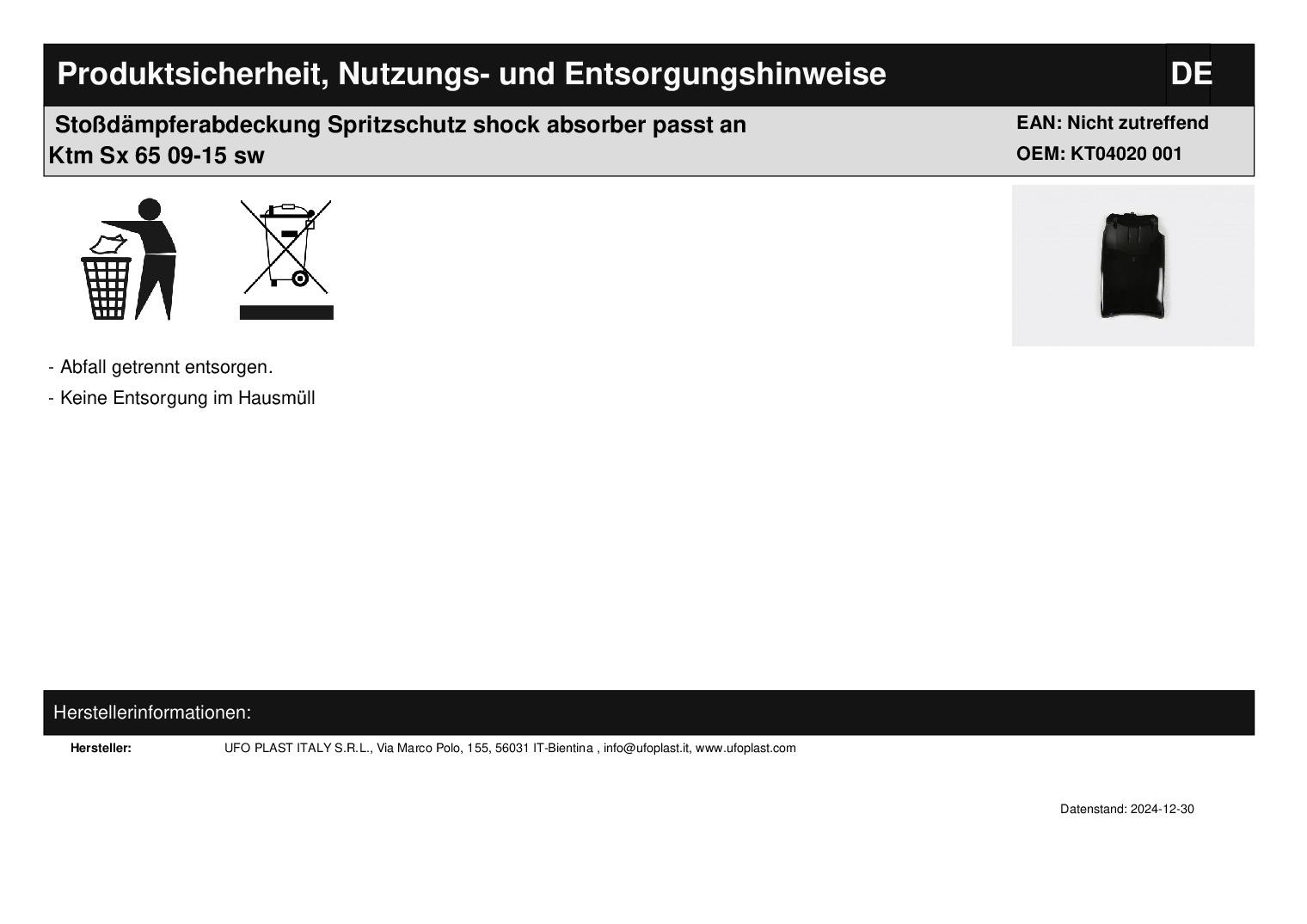 In dieser Auktion gibt es folgenden Artikel zu kaufen: Stoßdämpferabdeckung (siehe Foto) Modell: passend für Ktm Sx 65 Bj.: 09 - 15 Lieferumfang: siehe Foto Artikelzustand: neu aus Geschäftsauflösung, mit leichten Lagerspuren; Zustand siehe Foto Es handelt sich hierbei um kein Originalteil Bei Unklarheiten oder Fragen bitte erst E-Mail schreiben.