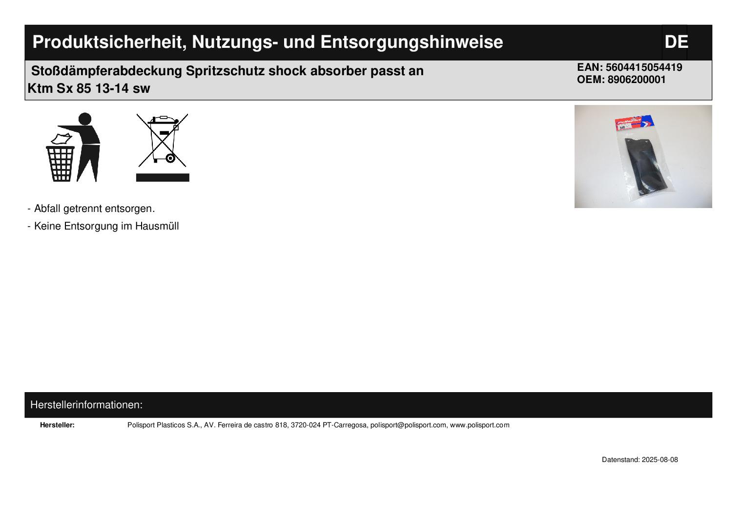 In dieser Auktion gibt es folgenden Artikel zu kaufen: Stoßdämpferabdeckung (siehe Foto) Fahrzeug: passend für Ktm Sx 85 Bj.: 2013 - 2014 Lieferumfang: siehe Foto Artikelzustand: neu Es handelt sich hierbei um kein Originalteil Bei Unklarheiten oder Fragen bitte erst E-Mail schreiben.