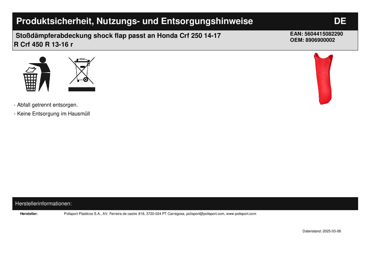 In dieser Auktion gibt es folgenden Artikel zu kaufen: Stoßdämpferabdeckung (siehe Foto) Modell: passend für Honda CRF 250R Bj.: 2014 - 2017 CRF 450R Bj.: 2013 - 2016 Lieferumfang: siehe Foto Artikelzustand: neu aus Geschäftsauflösung, mit minimalen Lagerspuren; Zustand siehe Foto Bei Unklarheiten oder Fragen bitte erst E-Mail schreiben.