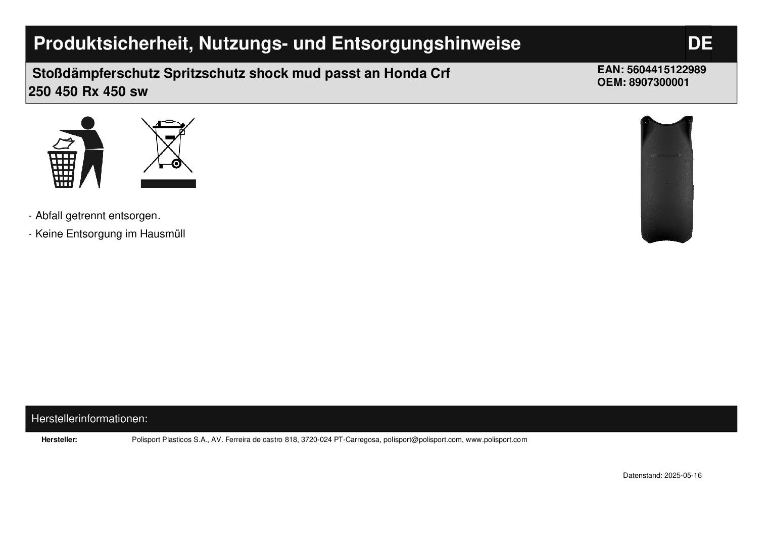 In dieser Auktion gibt es folgenden Artikel zu kaufen: Spritzschutz (ähnlich Foto) Modell: passend für Honda CRF 250 RX Bj.: 19 - 22 CRF 450 R Bj.: 20 - 22 CRF 450 RX Bj.: 21 - 22 Lieferumfang: siehe Foto