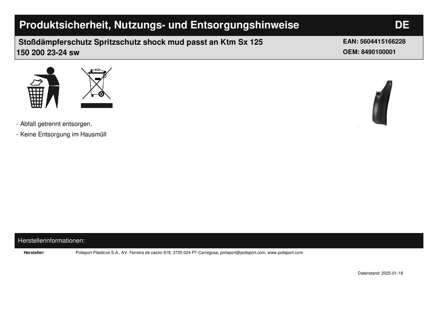 In dieser Auktion gibt es folgenden Artikel zu kaufen: Spritzschutz (siehe Foto) Modell: passend für KTM SX 125, 150, 200 Bj.: 2023 - 2024 Lieferumfang: siehe Foto Artikelzustand: neu Hierbei handelt es sich um kein Originalteil! Bei Unklarheiten oder Fragen bitte erst E-Mail schreiben.