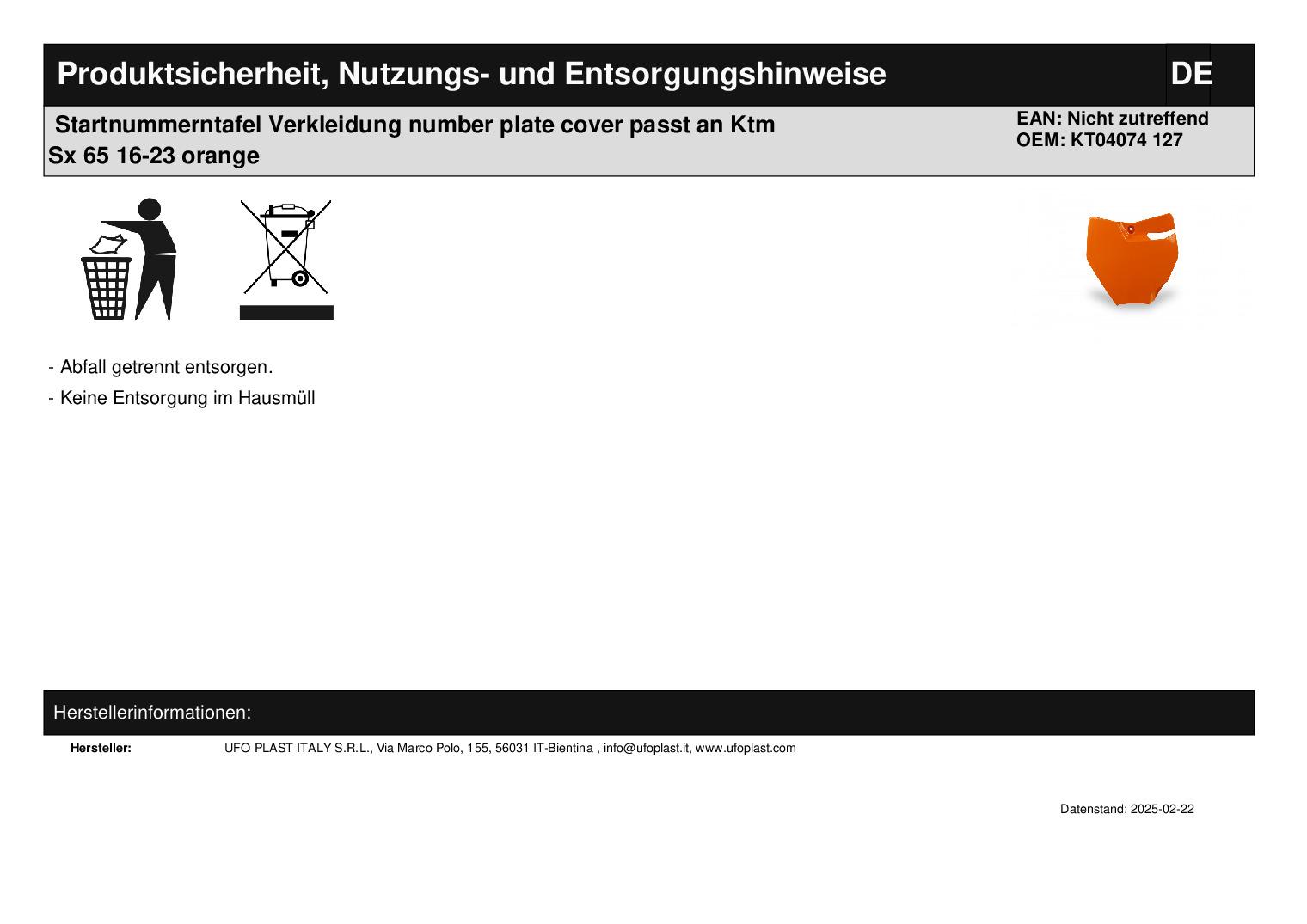 Titel: Startnummerntafel Verkleidung number plate cover passt an Ktm Sx 65 16-23 orange