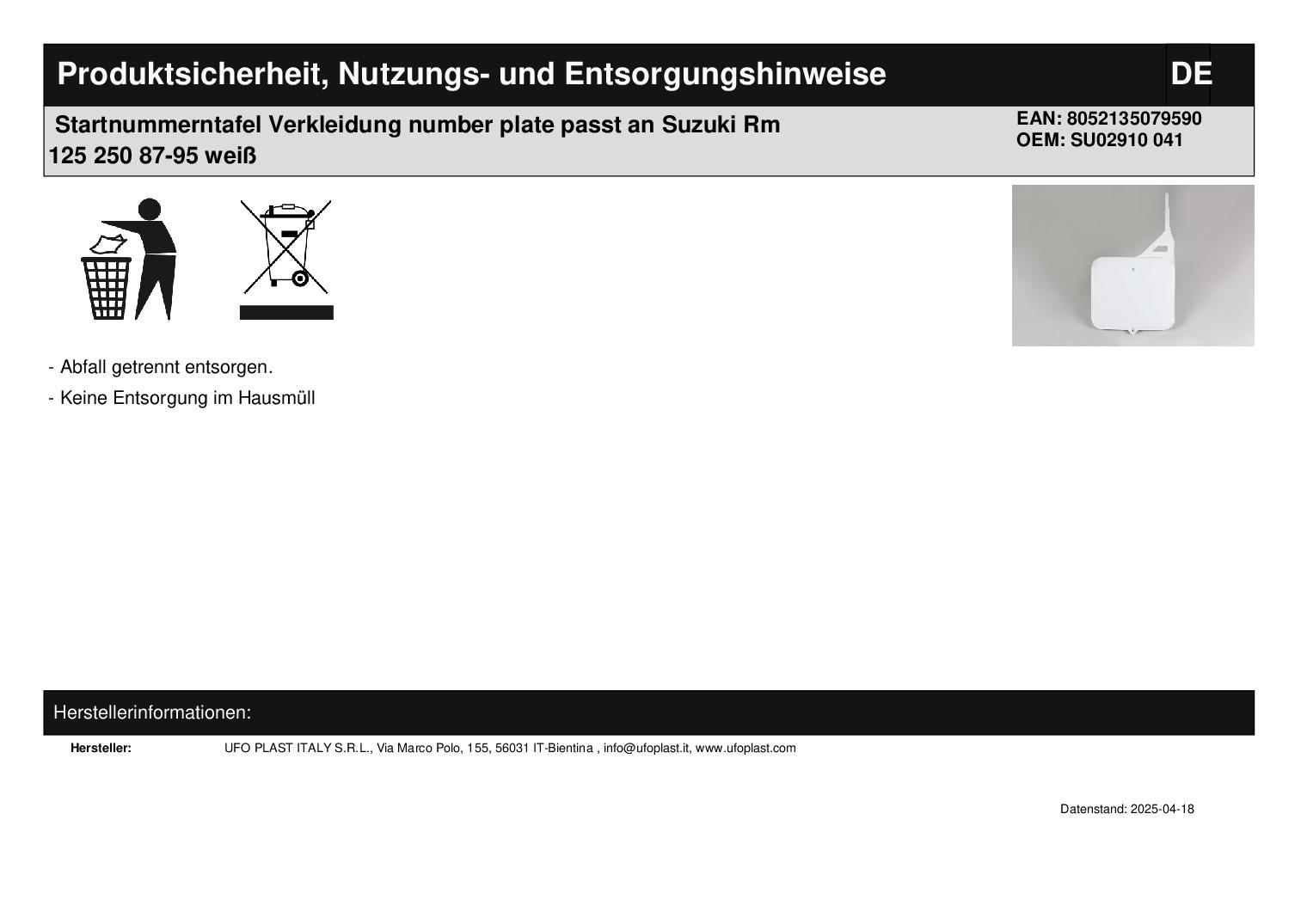 Titel: Startnummerntafel Verkleidung number plate passt an Suzuki Rm 125 250 87-95 weiß