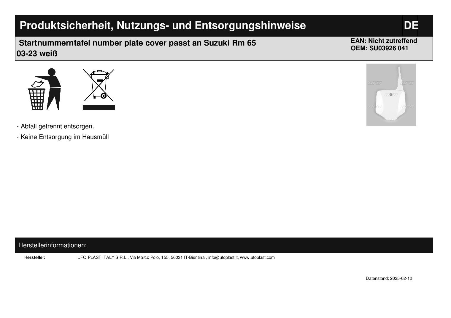 In dieser Auktion gibt es folgenden Artikel zu kaufen: Startnummerntafel (siehe Foto) Modell: passend für Suzuki RM 65 Bj.: 03 - 23 Lieferumfang: siehe Foto Artikelzustand: neu aus Geschäftsauflösung, mit leichten Lagerspuren; Zustand siehe Foto Bei Unklarheiten oder Fragen bitte erst E-Mail schreiben.