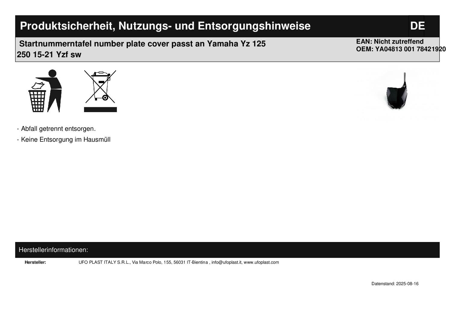 In dieser Auktion gibt es folgenden Artikel zu kaufen: Startnummerntafel (siehe Foto) Modell: passend für Yamaha YZ 125, 250 Bj.: 15 - 21 YZF 250 Bj.: 10 - 18 YZF 450 Bj.: 10 - 17 Lieferumfang: siehe Foto Artikelzustand: neu aus Geschäftsauflösung, mit minimalen Lagerspuren; Zustand siehe Foto Bei Unklarheiten oder Fragen bitte erst E-Mail schreiben.