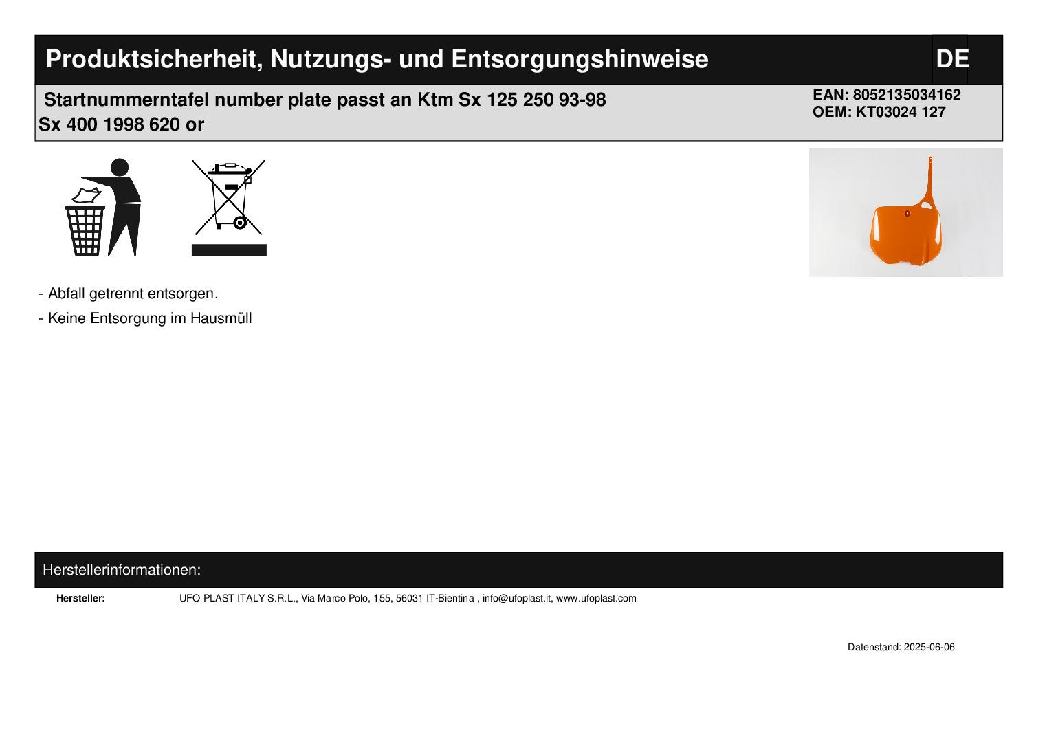 In dieser Auktion gibt es folgenden Artikel zu kaufen: Startnummerntafel (siehe Foto) Modell: passend für Ktm SX 125, 250 Bj.: 93 - 98 SX 360 Bj.: 96 - 97 SX 380, 400 Bj.: 98 SX 620 Bj.: 96 - 98 Lieferumfang: siehe Foto Artikelzustand: neu Es handelt sich hierbei um kein Originalteil Bei Unklarheiten oder Fragen bitte erst E-Mail schreiben.