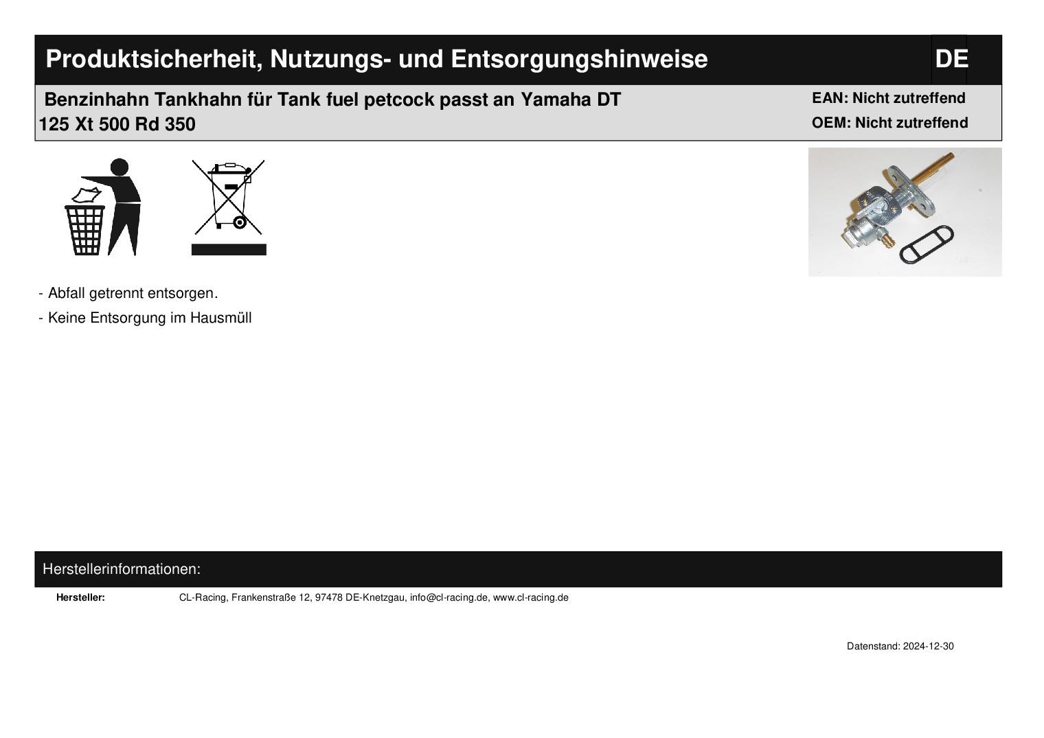 In dieser Auktion gibt es folgenden Artikel zu kaufen: Benzinhahn aus dem Zubehör (siehe Foto) Modell: passend für Yamaha Dt 125 Bj.: unbekannt Rd 350 Bj.: unbekannt Xt 500 Bj.: unbekannt Dt 50 - 80 Mx / Mxs Bj.: unbekannt Rd 50 Bj.: unbekannt Artikelbeschreibung: 3 Schaltstellungen On - Off - Reserve Lochabstand: 34 mm (Mitte Bohrung) Lieferumfang: siehe Foto Artikelzustand: neu Bei Unklarheiten oder Fragen bitte erst E-Mail schreiben.