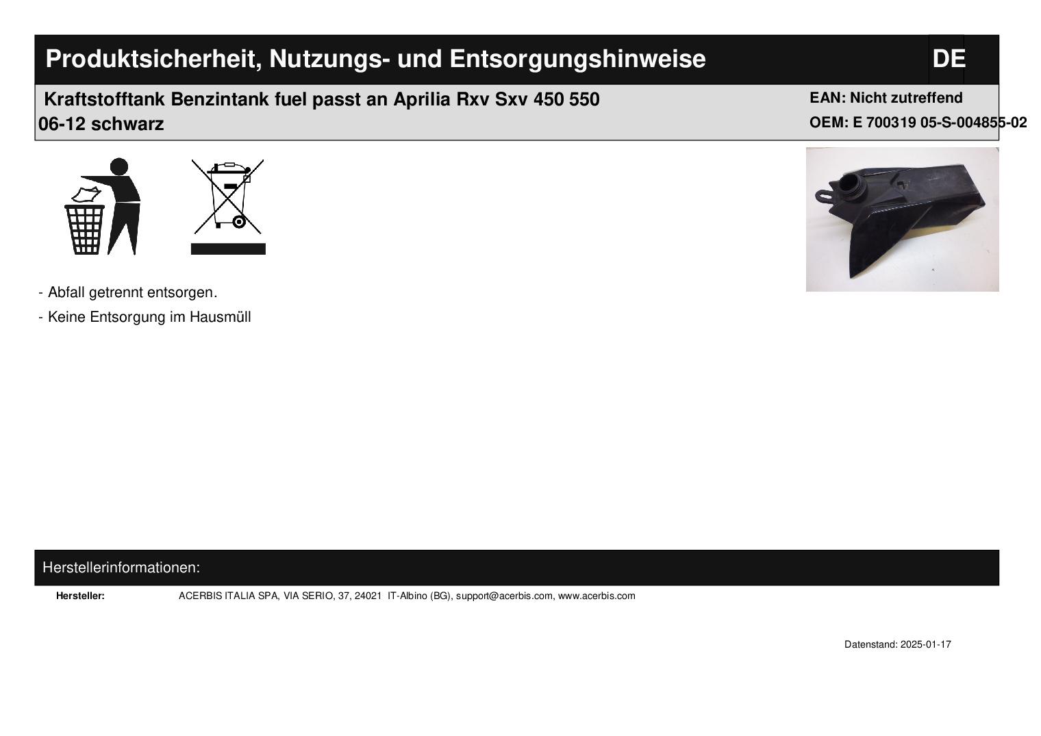 Titel: Kraftstofftank Benzintank fuel passt an Aprilia Rxv Sxv 450 550 06-12 schwarz