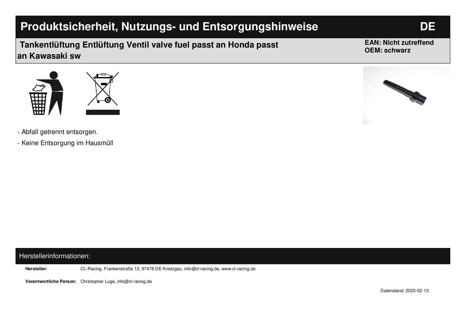 Titel: Tankentlüftung Entlüftung Ventil valve fuel passt an Honda passt an Kawasaki sw
