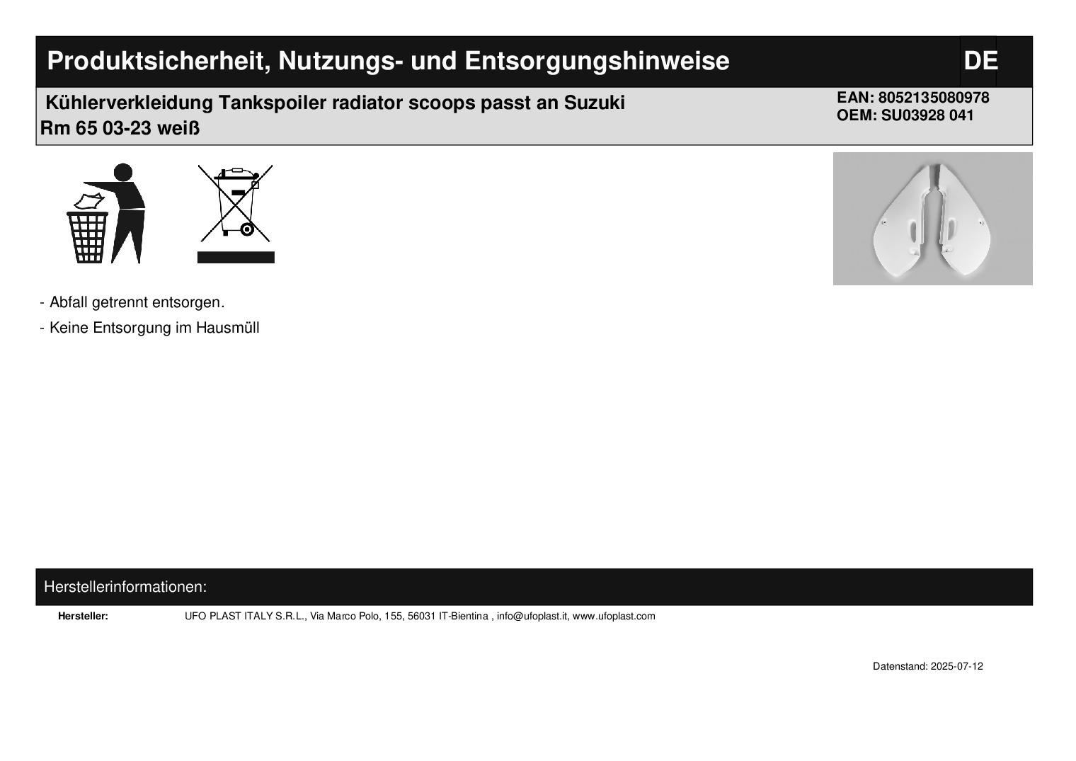 Titel: Kühlerverkleidung Tankspoiler radiator scoops passt an Suzuki Rm 65 03-23 weiß