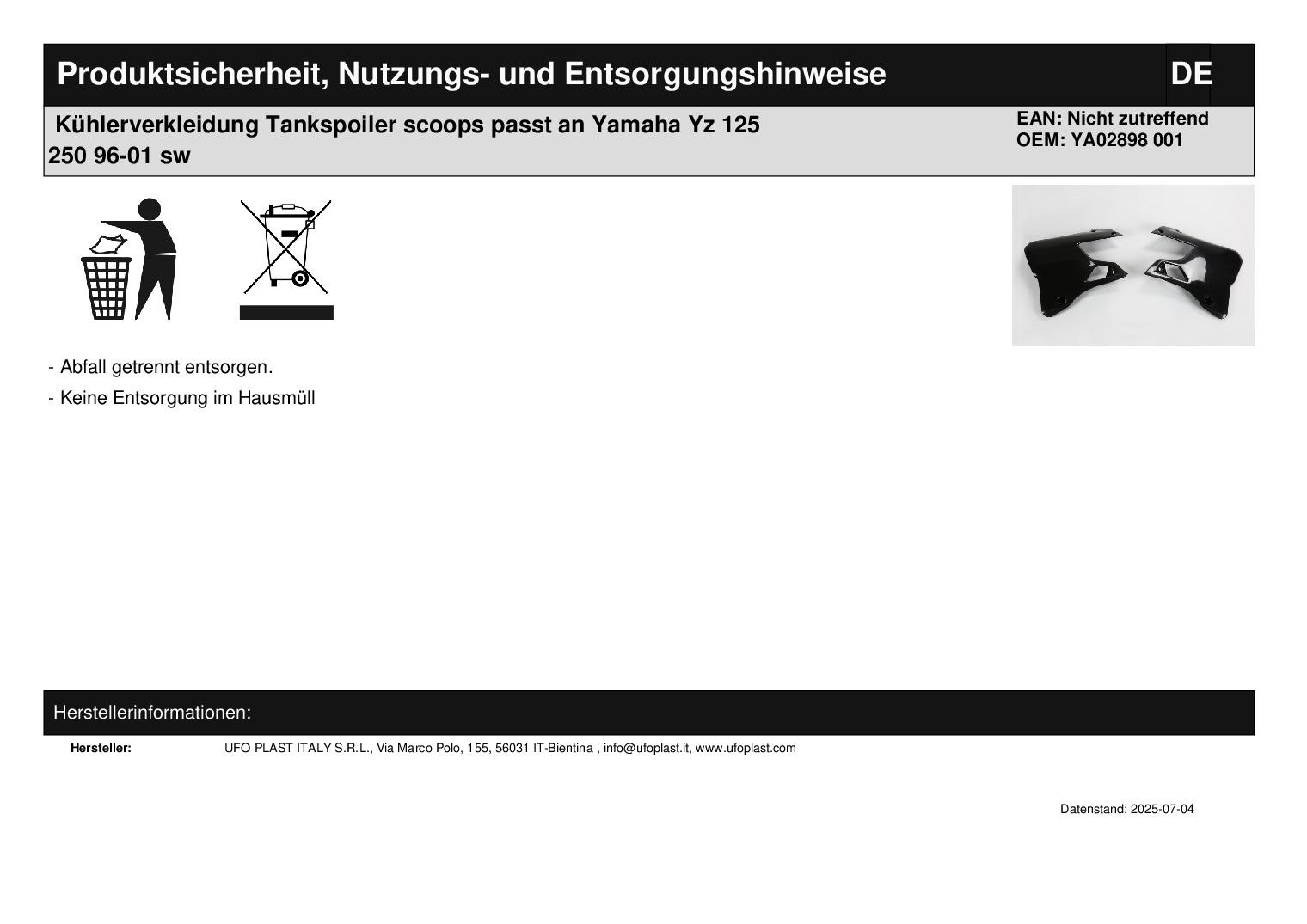 • Kühlerverkleidung Tankspoiler scoops passt an Yamaha Yz 125 250 96-01 sw
