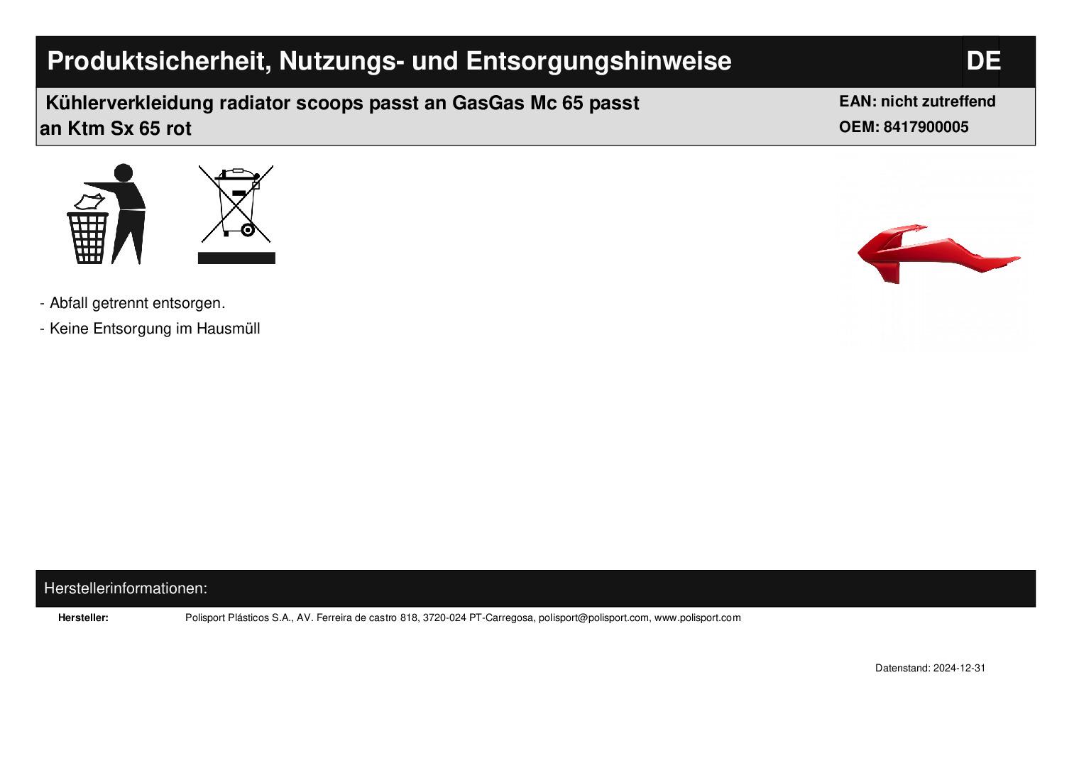 In dieser Auktion gibt es folgenden Artikel zu kaufen: Kühlerverkleidung (siehe Foto) Fahrzeug: passend für GasGas MC 65 Bj.: 2021 - 2023 passend für KTM SX 65 Bj.: 2016 - 2023 Lieferumfang: siehe Foto Artikelzustand: neu Es handelt sich hierbei um kein Originalteil Bei Unklarheiten oder Fragen bitte erst E-Mail schreiben.