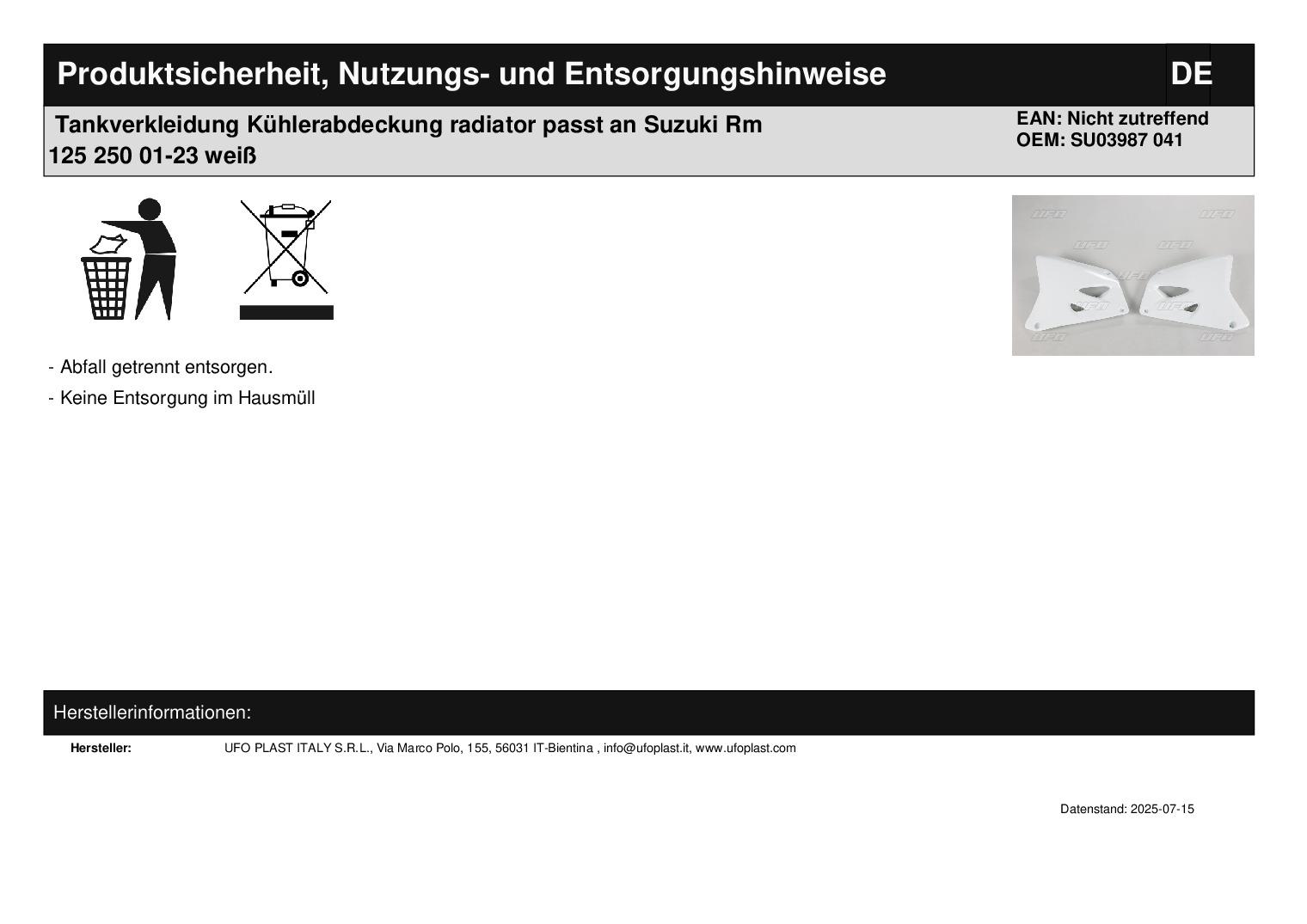 In dieser Auktion gibt es folgenden Artikel zu kaufen: Tankverkleidung (siehe Foto) Modell: passend für Suzuki RM 125, 250 Bj.: 2001 - 2023 Lieferumfang: siehe Foto Artikelzustand: neu aus Geschäftsauflösung, mit minimalen Lagerspuren; Zustand siehe Foto Bei Unklarheiten oder Fragen bitte erst E-Mail schreiben.