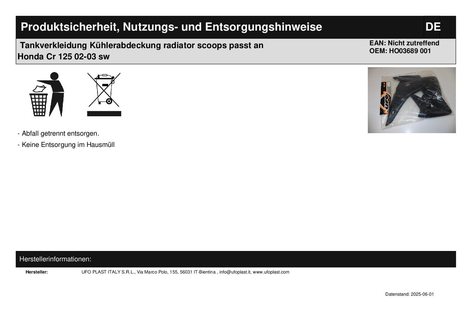 Titel: Tankverkleidung Kühlerabdeckung radiator scoops passt an Honda Cr 125 02-03 sw
