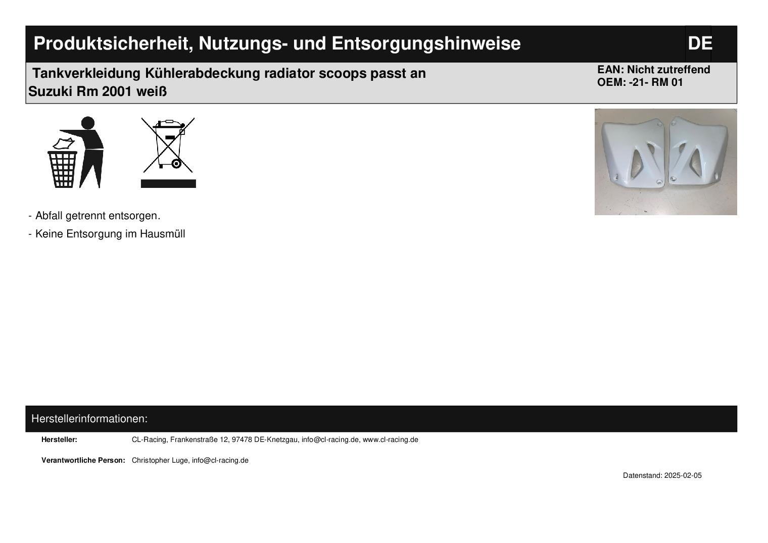In dieser Auktion gibt es folgenden Artikel zu kaufen: Tankverkleidung (siehe Foto) Fahrzeug: passend für Suzuki RM Bj.: 01 Lieferumfang: siehe Foto Artikelzustand: normale Gebrauchsspuren vorhanden; Zustand siehe Foto Bei Unklarheiten oder Fragen bitte erst E-Mail schreiben.