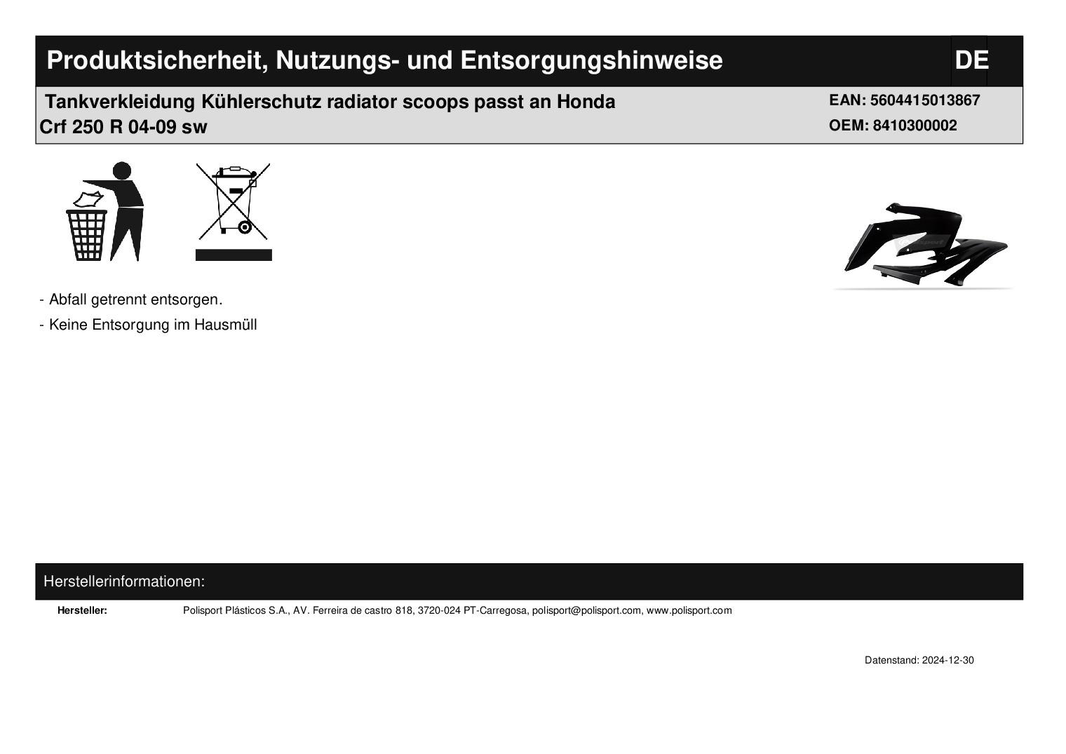 Titel: Tankverkleidung Kühlerschutz radiator scoops passt an Honda Crf 250 R 04-09 sw