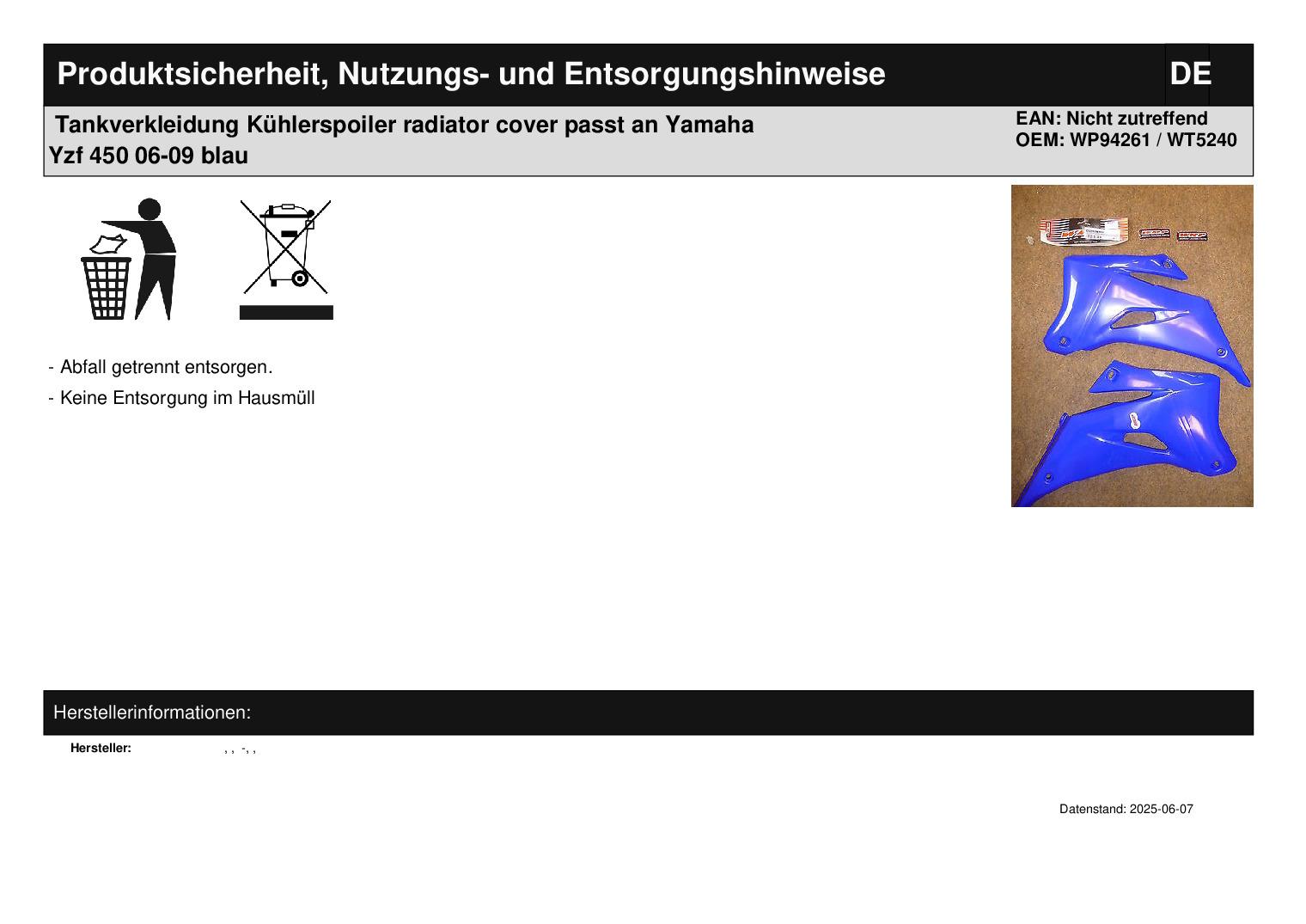 In dieser Auktion gibt es folgenden Artikel zu kaufen: Tankverkleidung (siehe Foto) Modell: passend für Yamaha YZF 250 Bj.: 2006 - 2009 YZF 450 Bj.: 2006 - 2009 Lieferumfang: siehe Foto Artikelzustand: neu aus Geschäftsauflösung, mit minimalen Lagerspuren; Zustand siehe Foto Bei Unklarheiten oder Fragen bitte erst E-Mail schreiben.