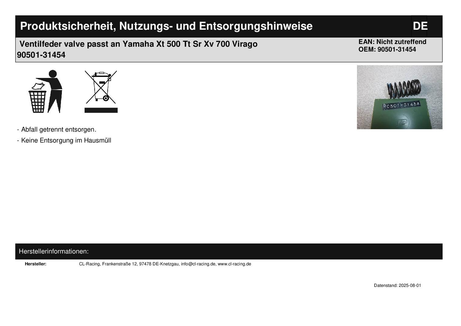In dieser Auktion gibt es folgenden Artikel zu kaufen: Ventilfeder (siehe Foto) Modell: passend für Yamaha TT 500 Bj.: 1977 - 1981 XT 500 Bj.: 1977 - 1981 SR 500 Bj.: 1978 - 1981 XV 750 Bj.: 1981 - 1991 XV 920 Bj.: 1981 - 1983