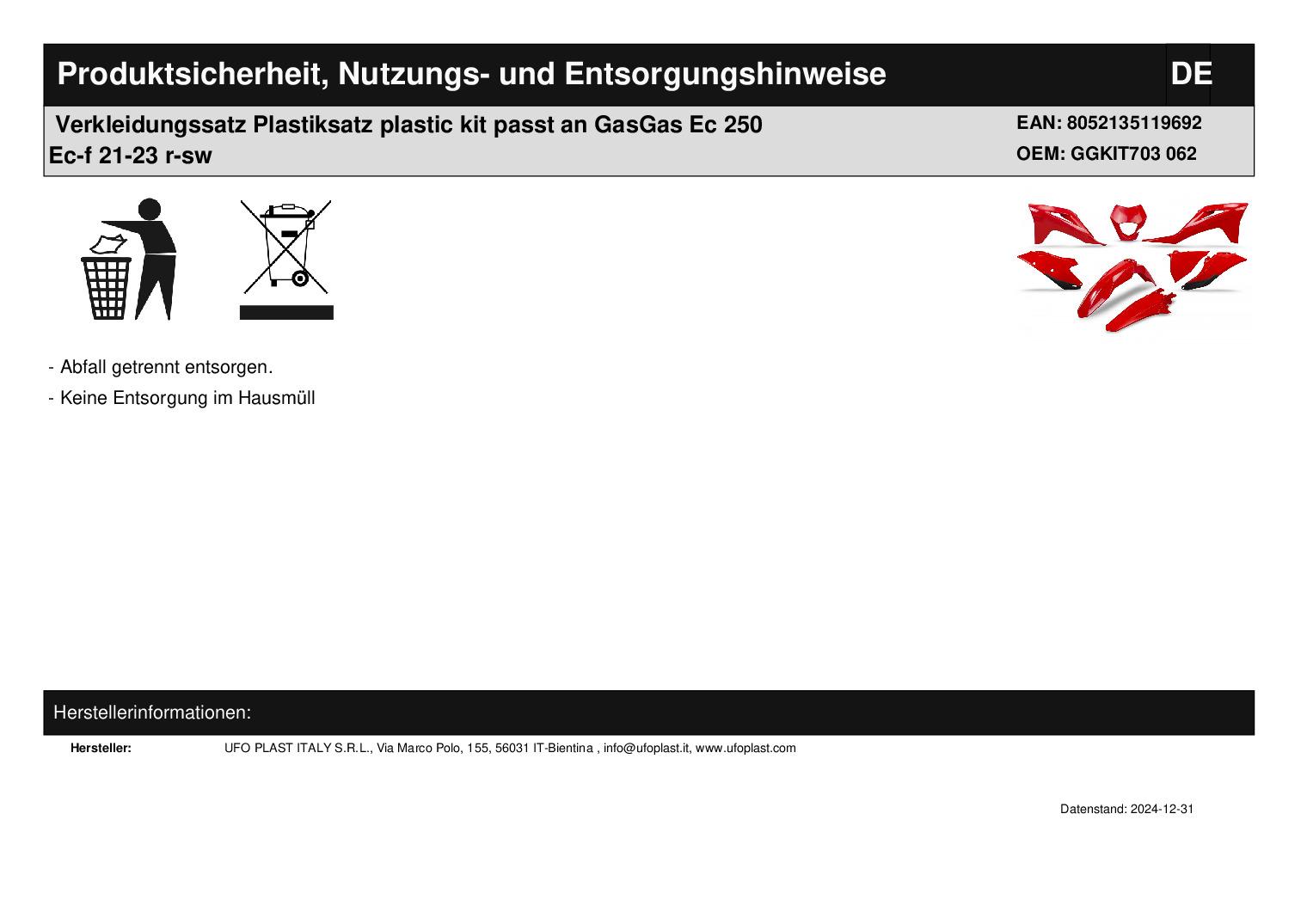 Schutzblech vorne Schutzblech hinten Tankverkleidung links und rechts Seitenverkleidung links und rechts mit Luftfilterkastendeckel links Startnummerntafel Artikelzustand: neu Bei Unklarheiten oder Fragen bitte erst E-Mail schreiben.