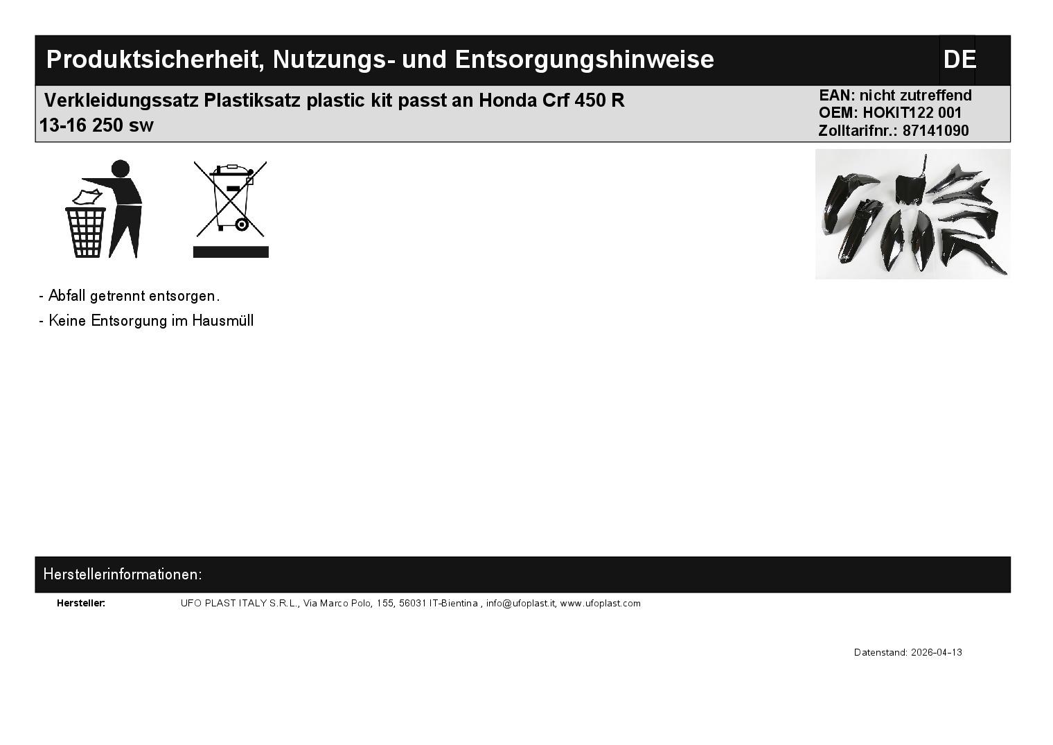 • Verkleidungssatz Plastiksatz plastic kit passt an Honda Crf 450 R 13-16 250 sw