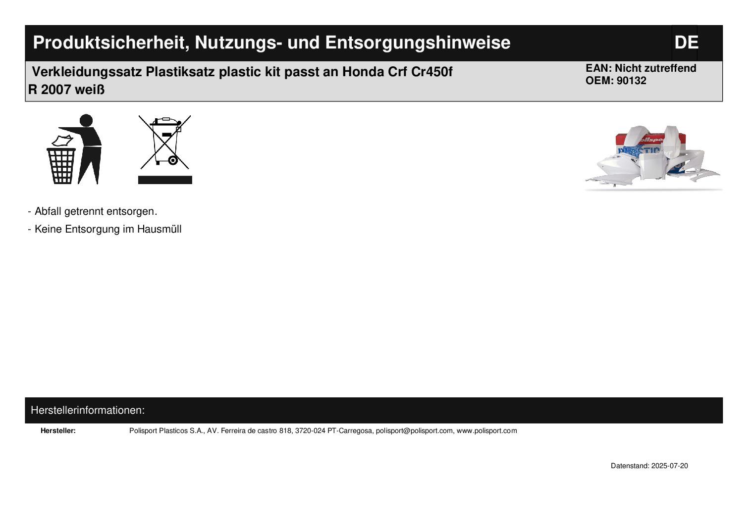 In dieser Auktion gibt es folgenden Artikel zu kaufen: Verkleidungssatz (ähnlich Foto) Modell: passend für Honda CRF 450 R Bj.: 07 Lieferumfang: Tankverkleidung Seitenverkleidung Schutzblech vorne Schutzblech hinten Startnummerntafel Artikelzustand: neu Bei Unklarheiten oder Fragen bitte erst E-Mail schreiben.