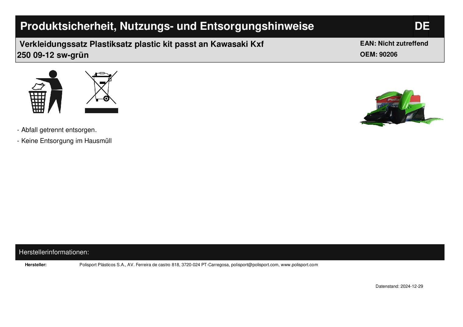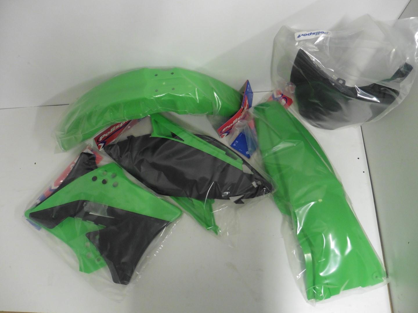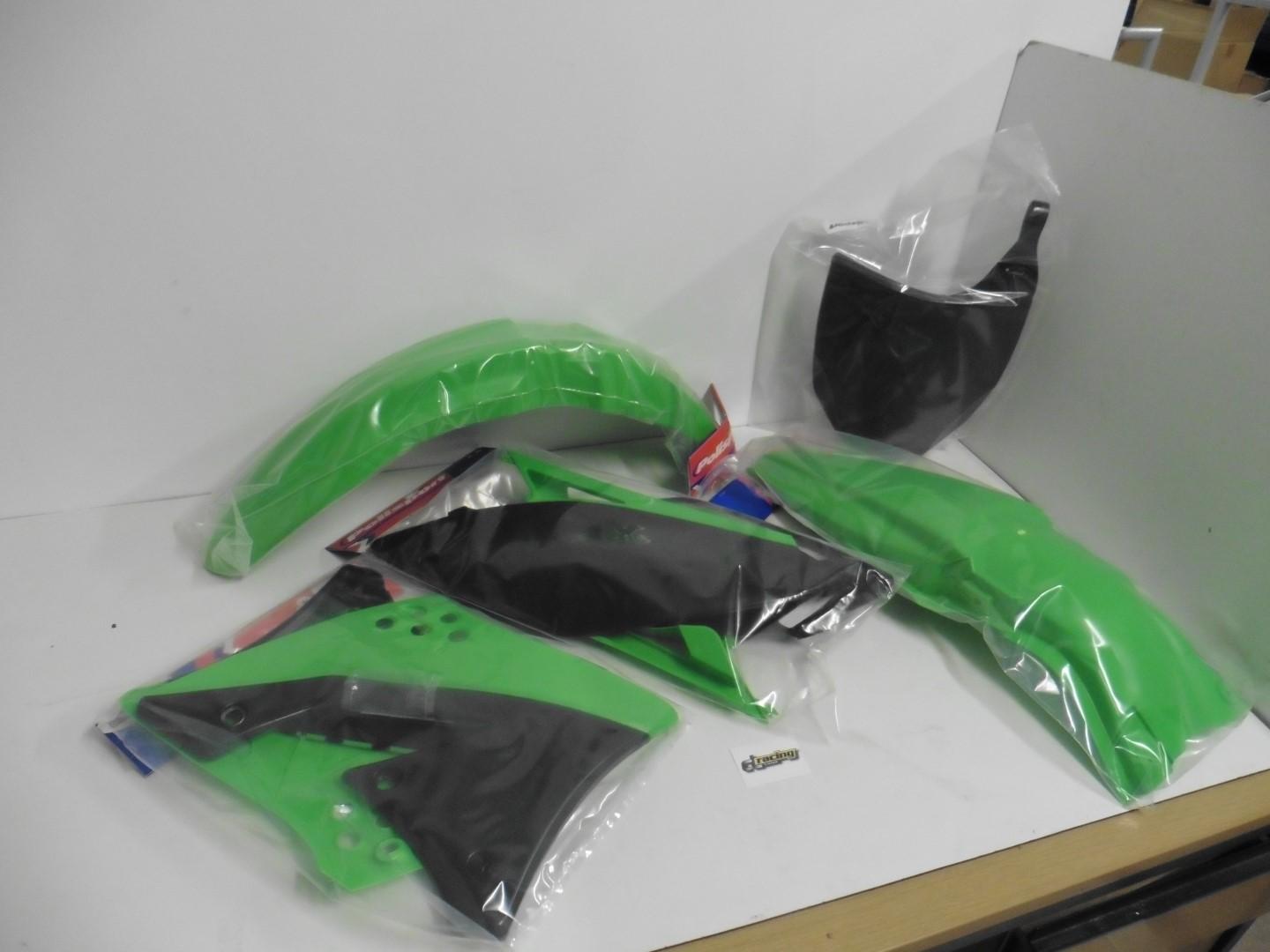 In dieser Auktion gibt es folgenden Artikel zu kaufen: Verkleidungssatz (ähnlich Foto) Modell: passend für Kawasaki KXF 250 Bj.: 09 - 12 Lieferumfang: Tankverkleidung links + rechts Seitenverkleidung links + rechts Schutzblech vorne Schutzblech hinten Startnummerntafel Artikelzustand: neu Hierbei handelt es sich um kein Orignalteil. Bei Unklarheiten oder Fragen bitte erst E-Mail schreiben.