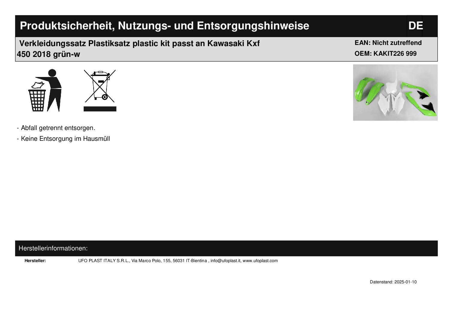 In dieser Auktion gibt es folgenden Artikel zu kaufen: Verkleidungssatz (ähnlich Foto) Modell: passend für Kawasaki KXF 450 Bj.: 2018 Lieferumfang: siehe Foto Artikelzustand: neu Hierbei handelt es sich um kein Originalteil! Bei Unklarheiten oder Fragen bitte erst E-Mail schreiben.