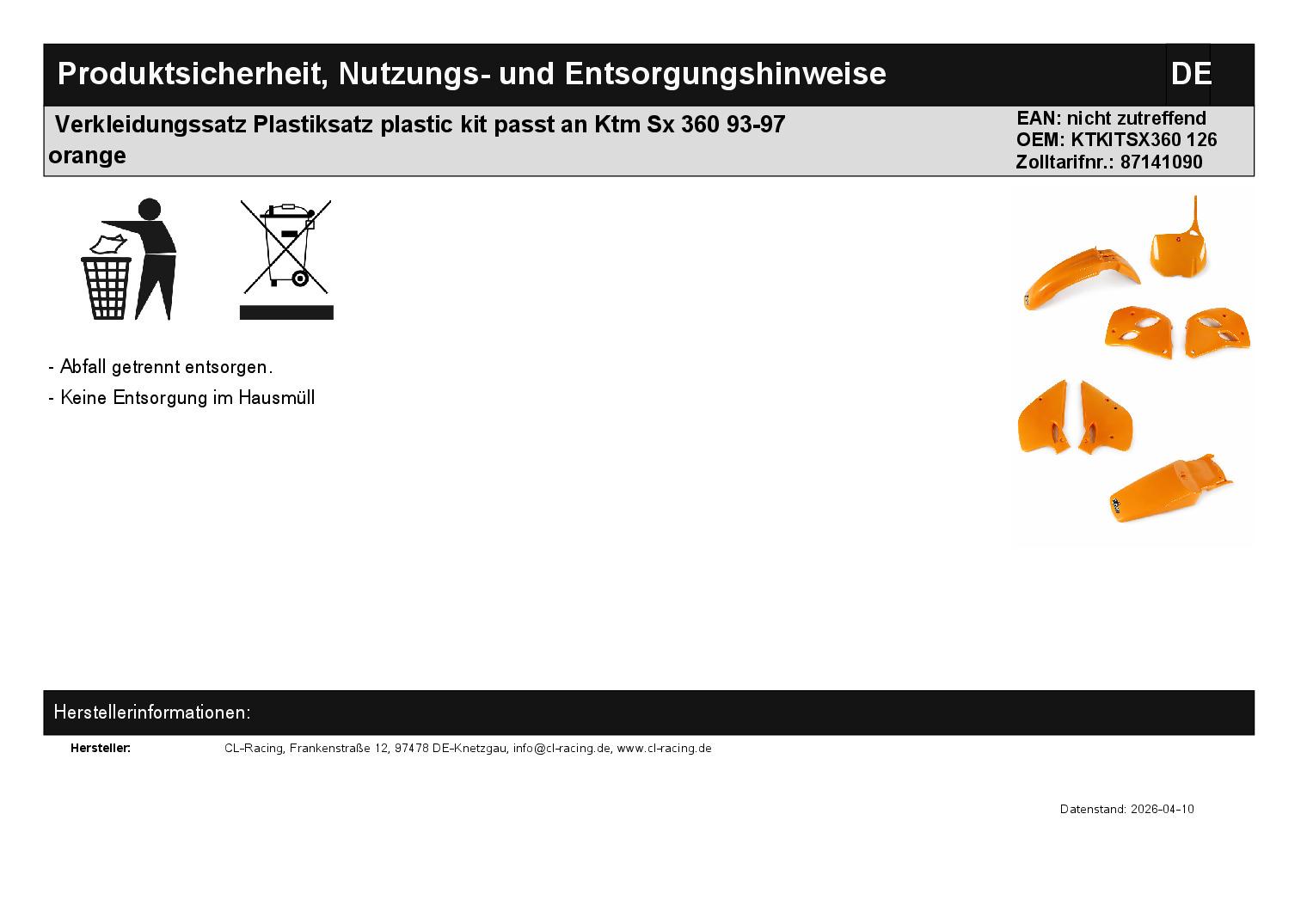 In dieser Auktion gibt es folgenden Artikel zu kaufen: Verkleidungssatz ohne Lampenmaske (ähnlich Foto) Modell: passend für Ktm SX 360 Bj.: 1993 - 1997 Lieferumfang: siehe Foto Artikelzustand: neu
