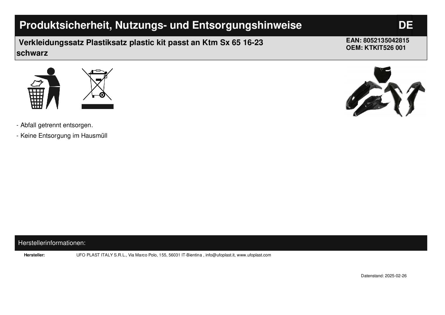 Schutzblech vorne Schutzblech hinten Tankverkleidung links und rechts Startnummerntafel Artikelzustand: neu Es handelt sich hierbei um kein Originalteil Bei Unklarheiten oder Fragen bitte erst E-Mail schreiben.