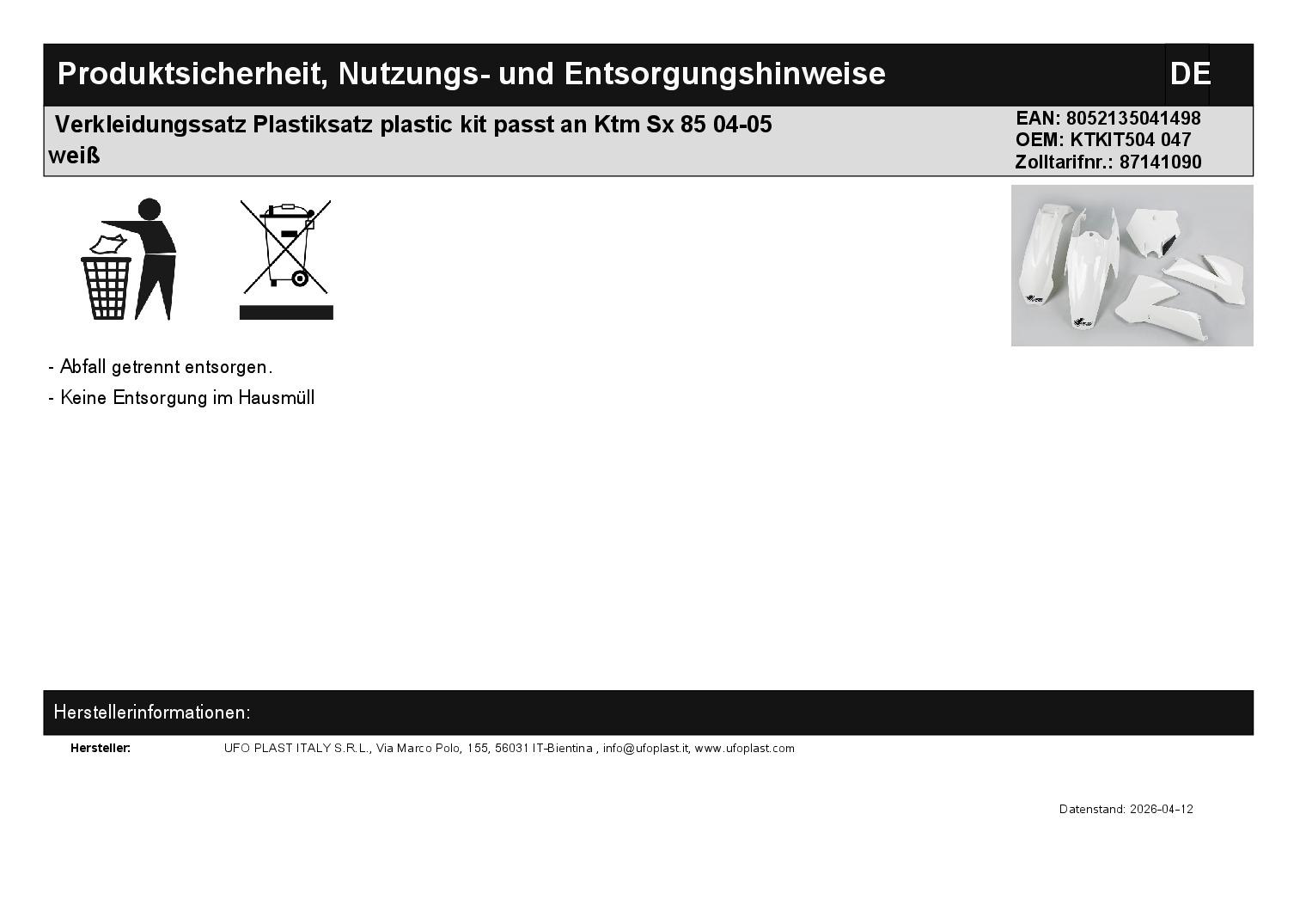 Titel: Verkleidungssatz Plastiksatz plastic kit passt an Ktm Sx 85 04-05 weiß