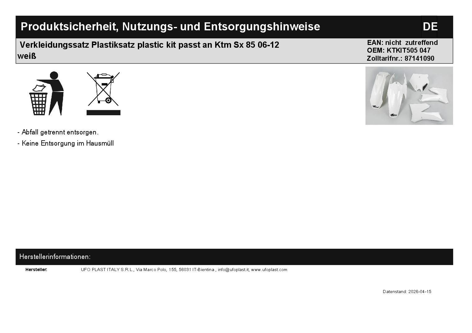 In dieser Auktion gibt es folgenden Artikel zu kaufen: Verkleidungssatz (ähnlich Foto) Modell: passend für Ktm SX 85 Bj.: 2006 - 2012 (2-Takt) Lieferumfang: siehe Foto Artikelzustand: neu aus Geschäftsauflösung, mit minimalen Lagerspuren; Zustand siehe Foto Hierbei handelt es sich um kein Originalteil! Bei Unklarheiten oder Fragen bitte erst E-Mail schreiben.