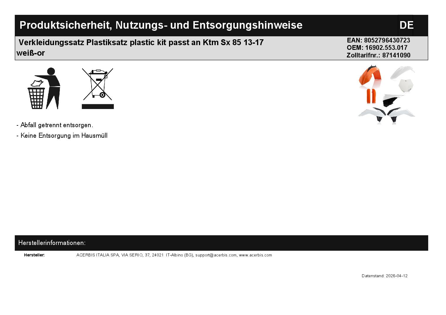 In dieser Auktion gibt es folgenden Artikel zu kaufen: Verkleidungssatz (ähnlich Foto) Modell: passend für KTM SX 85 Bj.: 2013 - 2017 Lieferumfang: siehe Foto Artikelzustand: neu Hierbei handelt es sich um kein Originalteil! Bei Unklarheiten oder Fragen bitte erst E-Mail schreiben.