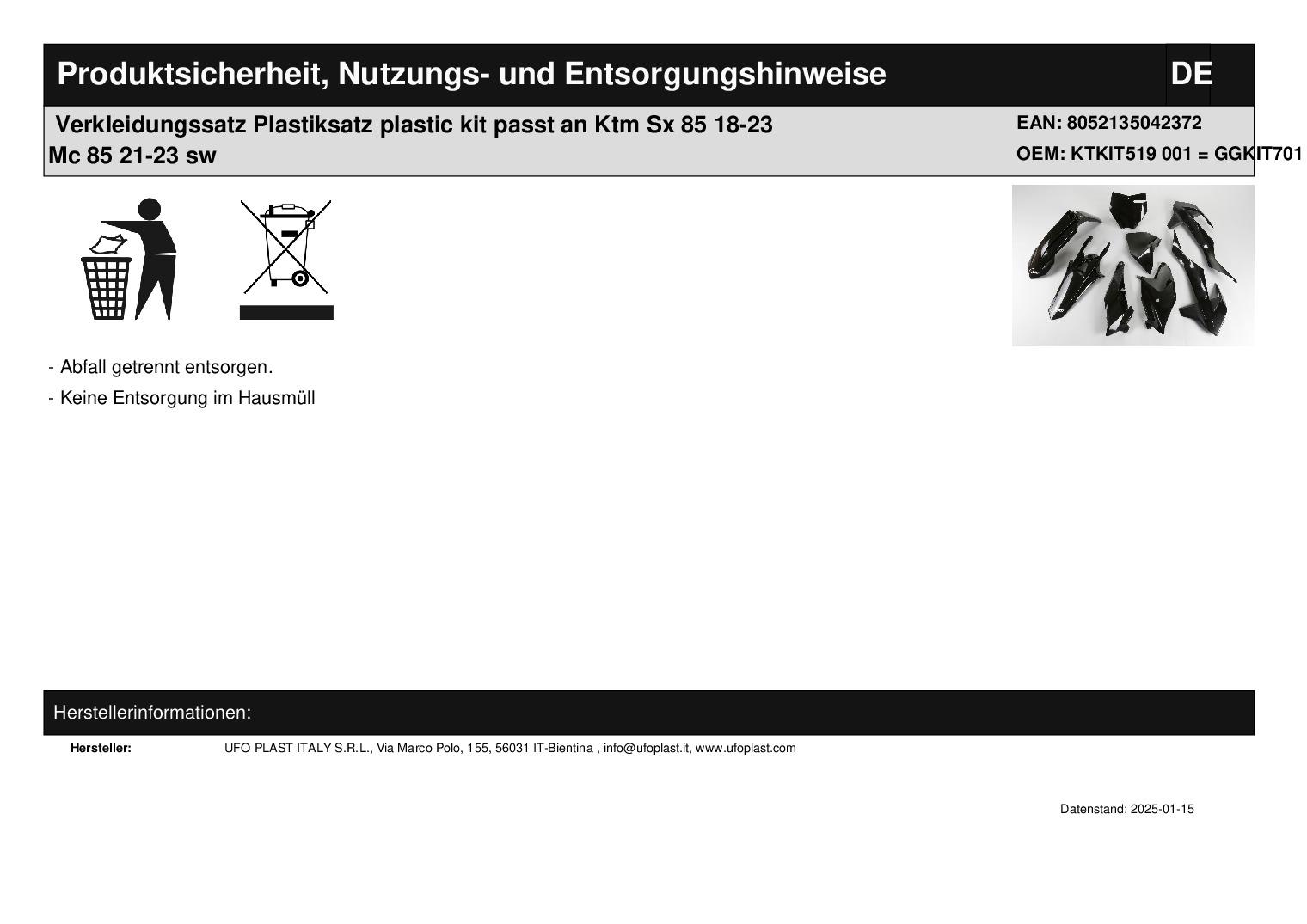 In dieser Auktion gibt es folgenden Artikel zu kaufen: Verkleidungssatz (ähnlich Foto) Modell: passend für Ktm SX 85 Bj.: 2018 - 2024 passend für Gas Gas Mc 85 Bj.: 2021 - 2024 Lieferumfang: siehe Foto